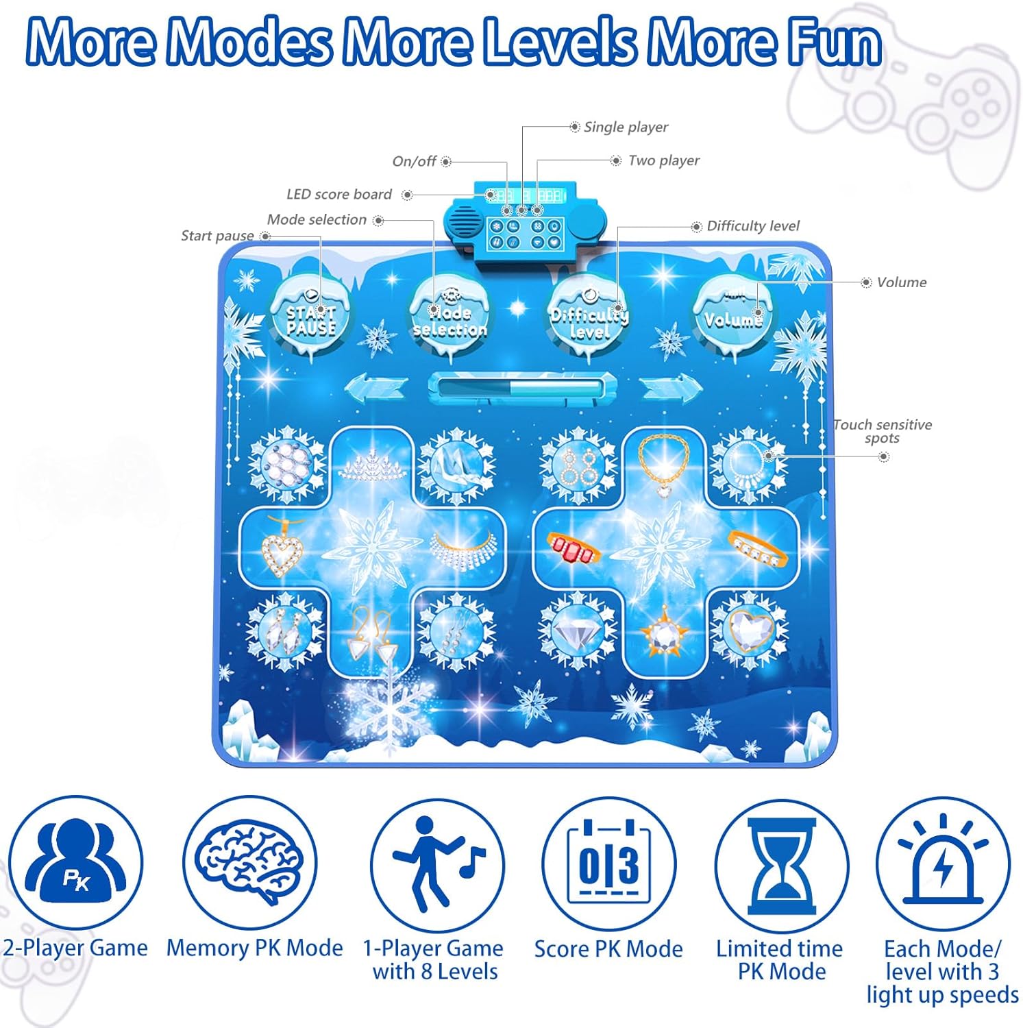 Kids Dance Mat Toys - 2-Player Dance Pad Gifts for Girls Boys Toddlers 3 4 5 6 7 8 9 + Year Old Electronic Dancing Mat Floor Games Toy with Music Light Christmas Birthday Gift (Frozen Blue)