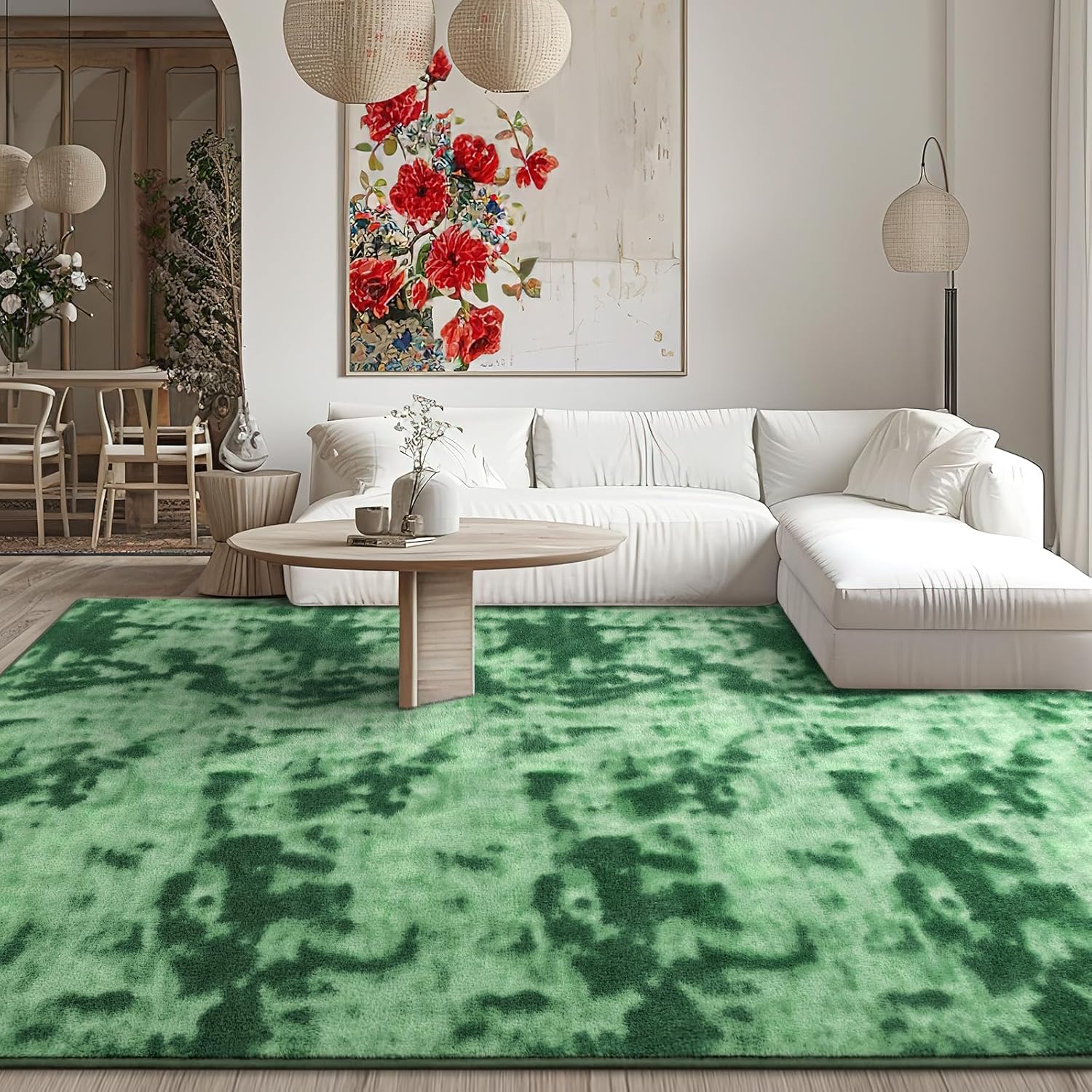 - [Modern Minimalist Home Decor]Tie-Dyed green floor rug fits any room decoration. Minimalist style, abstract tie-dye colors and modern funky appearance bring you a cozy and luxury home experience, which is widely applicable to living room, bedroom, dorm, dinning room, office and nursery room