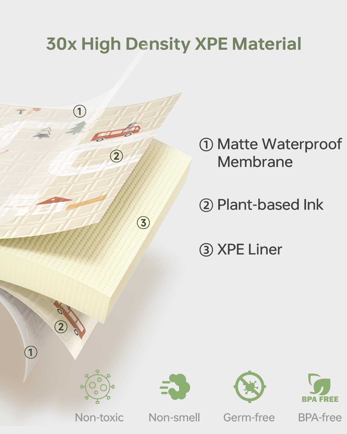 - [Waterproof & Easy to Clean]: Our baby play mat is with 100% water-resistant surface,and also easy to clean. Just wipe it down with wipes or tissues. Also, The waterproof surface layer also protect pattern color from falling off, exactly durable to use. This makes it a convenient choice for busy parents.