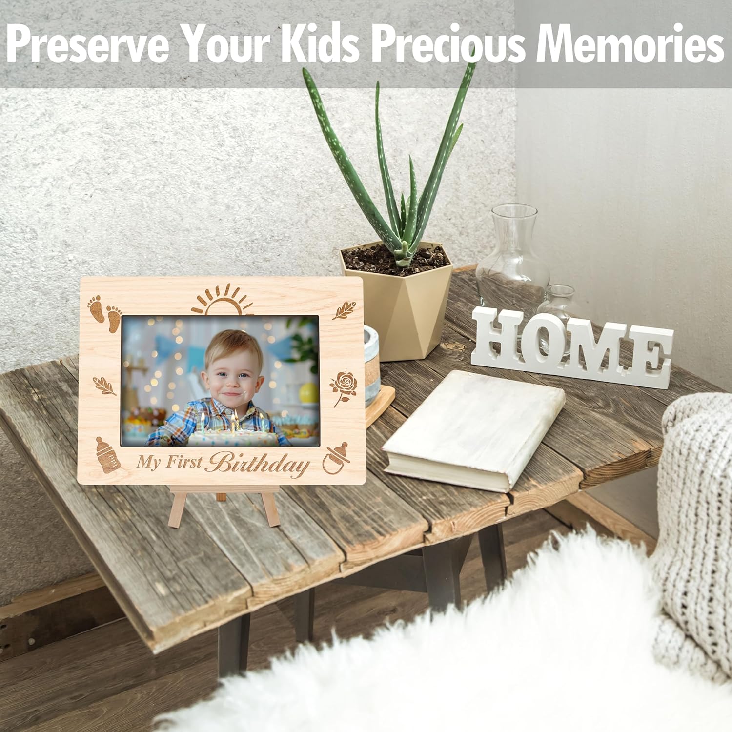 - 【4 x 6 Photo Frame】You will receive a baby's first birthday picture frame measuring approximately 5.8 x 8 inches, complete with an easel and suitable for a 4 x 6 inch photo.