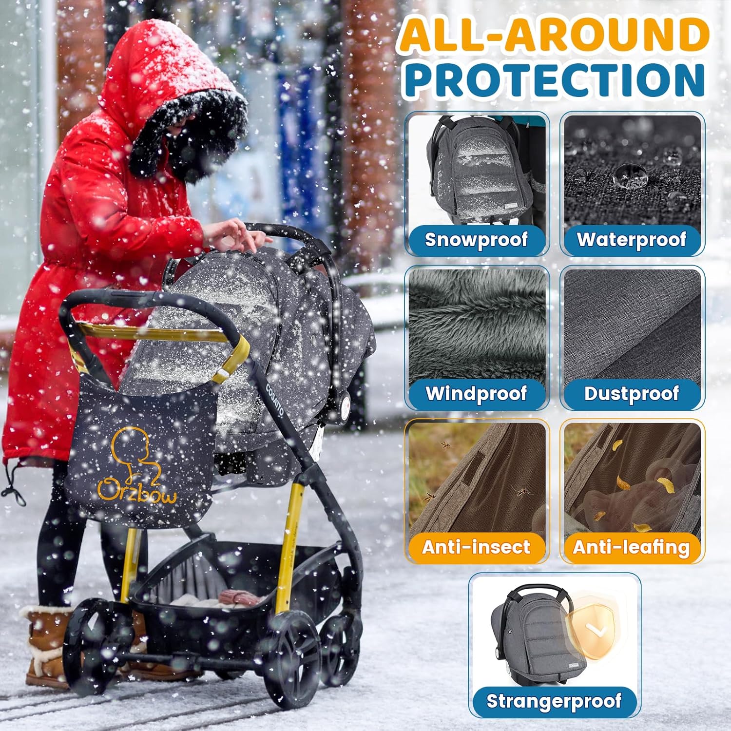 - Weather Proof & Warmth Materials: Orzbow infant car seat cover combines crystal velvet lining with cationic fabric; Resin cotton fill shields against wind, water, and dust while maintaining cold-weather durability for daily commutes and park visits