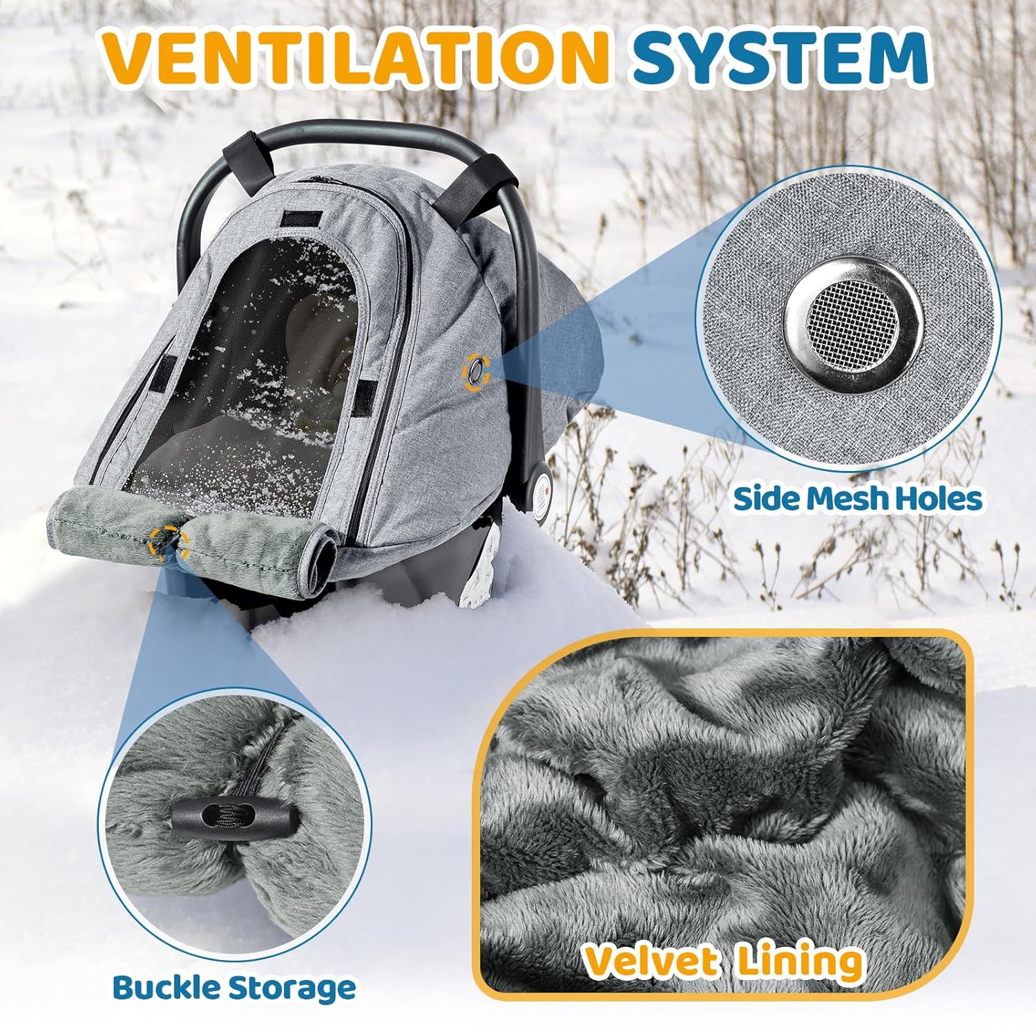 Orzbow Winter Car Seat Cover for Babies, Waterproof Carseat Canopy Cover with Peep Window of Breathable Mesh, Warm and Cozy Baby CarSeat & Carrier Covers for Cold Weather, Machine Washable, Light Grey