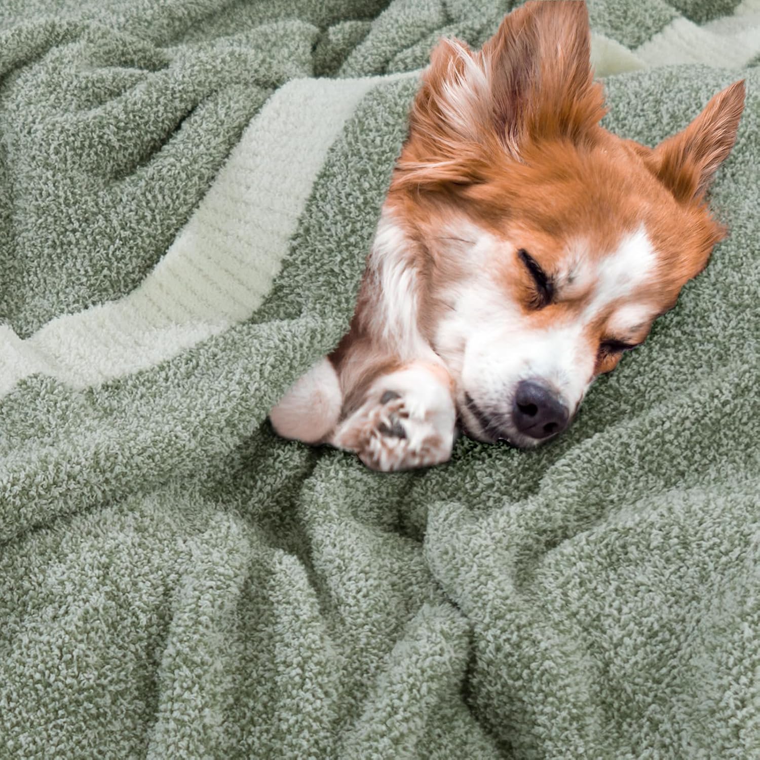 NEXHOME PRO Super Soft Throw Blankets for Couch, Reversible Warm Blankets Cozy Knit Blanket for Women, Fuzzy Plush Lightweight Throws for Sofa, Bed, Picnic, Sage Green White, 50 x 60 inches