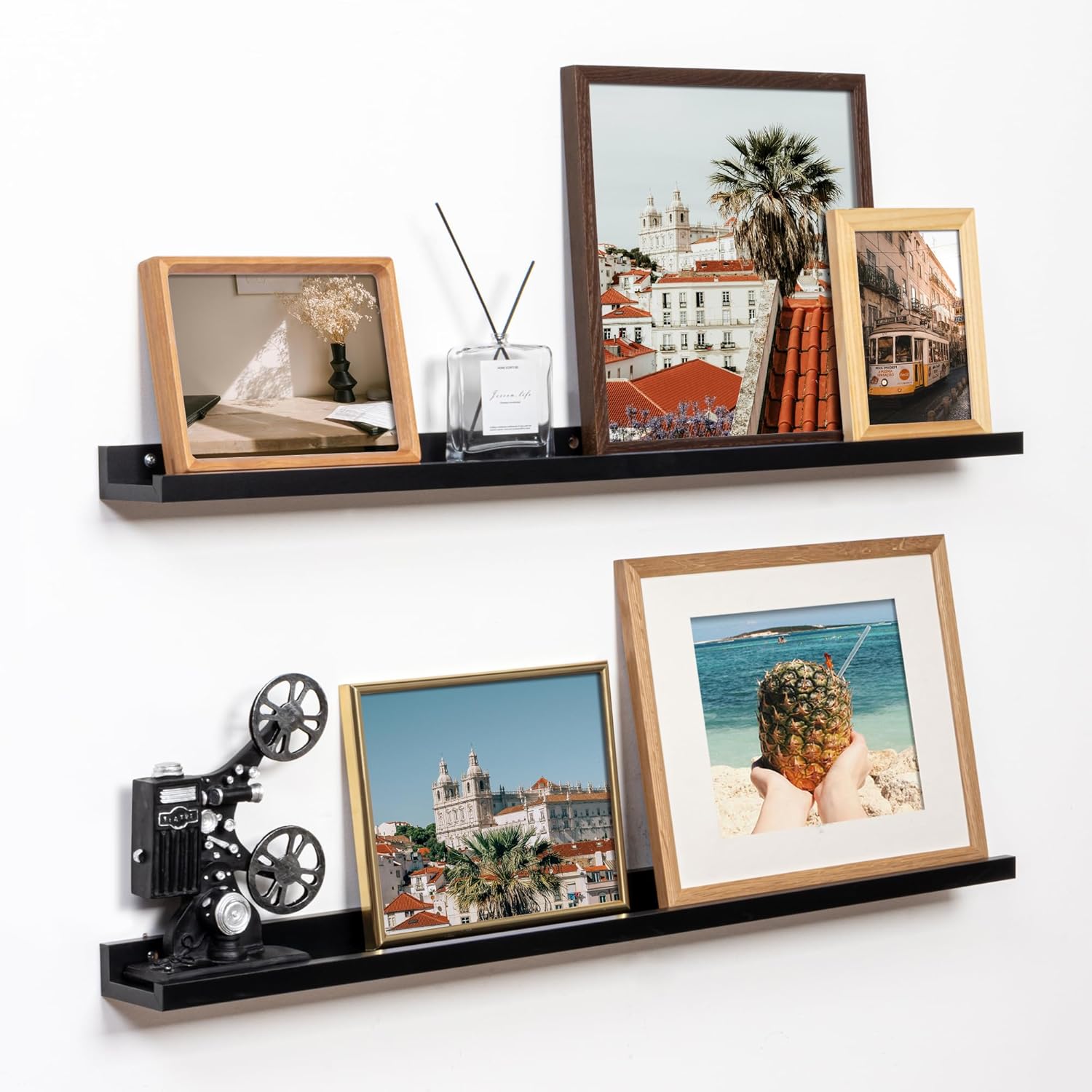- MEMORIES SHOWCASE SHELF: Do you have a lot of memorable photos, but don't know how to display them, Fun Memories picture ledge shelves (especially in large sizes) are perfect for you to display them! With our hanging racks, you can store and display different types and sizes of photo frames in one place without worrying about