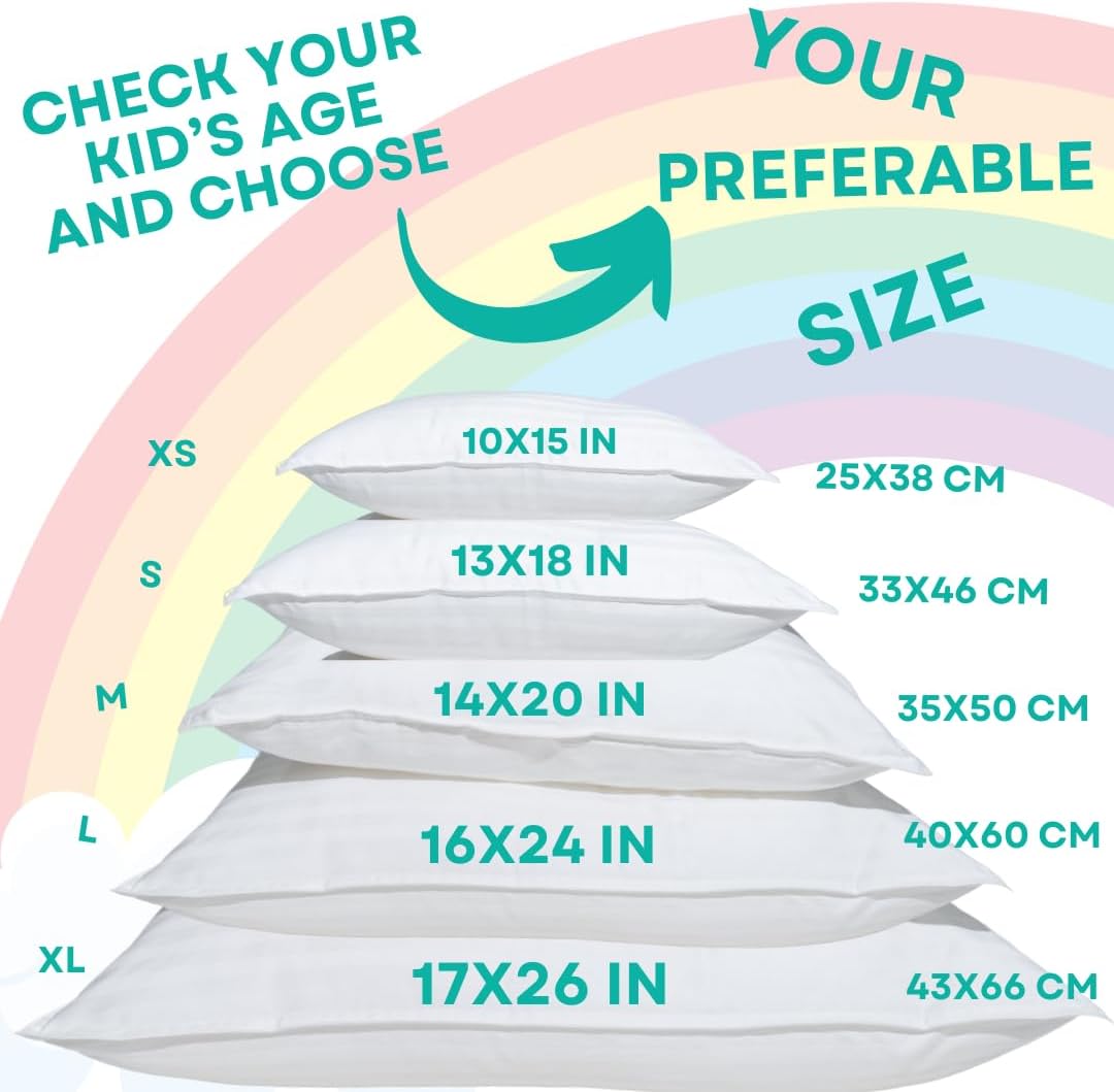 - DOWN ALTERNATIVE FILL: these pillows for children are filled with 100% Down Alternative. Durable, machine washable, lump free & hypoallergenic. It can safely be used without toddler pillowcase, pillow covers or travel pillow case cover.