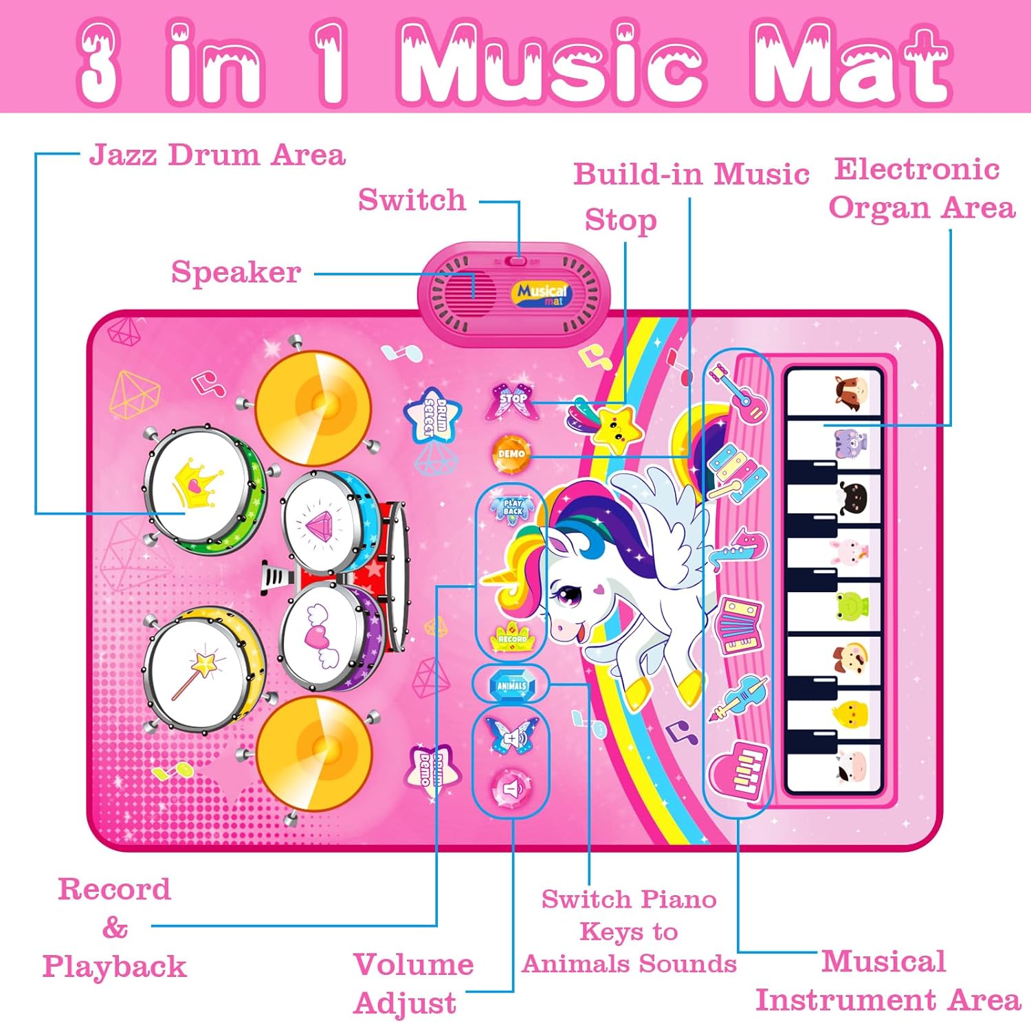 Toys for 1 Year Old Girl Gifts: Baby Music Mat Toddler Toys Age 1-2 - 3 in 1 Piano Drum Animal Touch Unicorn Toy - Infant Musical Toy 12-18 Months Babies Birthday Easter Gifts for 1 2 3 Year Old Girls