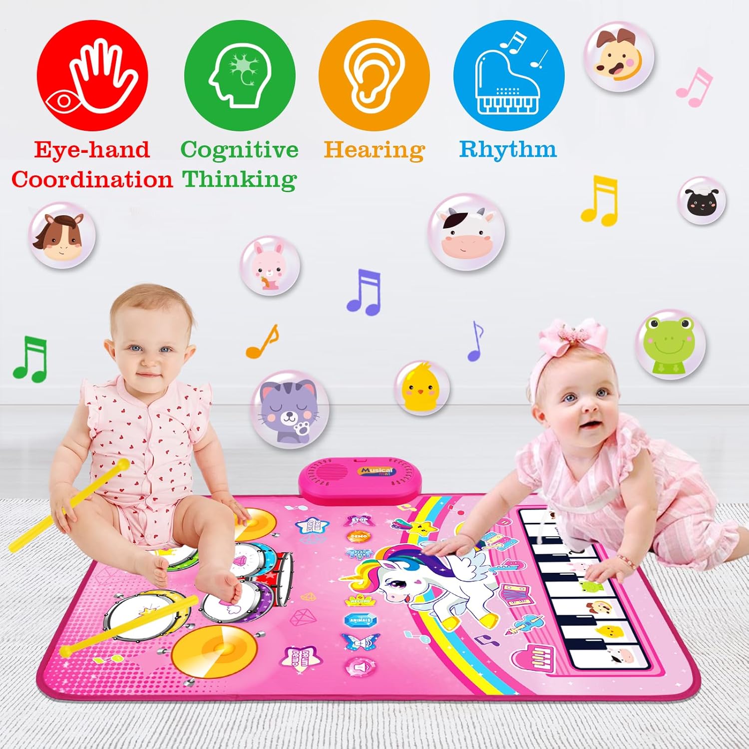 - TOUCH SENSITIVE & INTERACTIVE: Our baby girl toys music mats touch inspired, can be touched by hand and stepped on by foot, interactive, just touch and click on the musical instrument icon to select the instrument you want to play. In addition, the toddler toys for ages 1-3 is designed for 2 players, so you can enjoy music with your toddler outdoors or indoors, it is a good way to enhance interaction between parent and child., and is a great musical playmat for babies 12-18 months and early learning toy. Take it with you on your family trips for musical fun on the go!