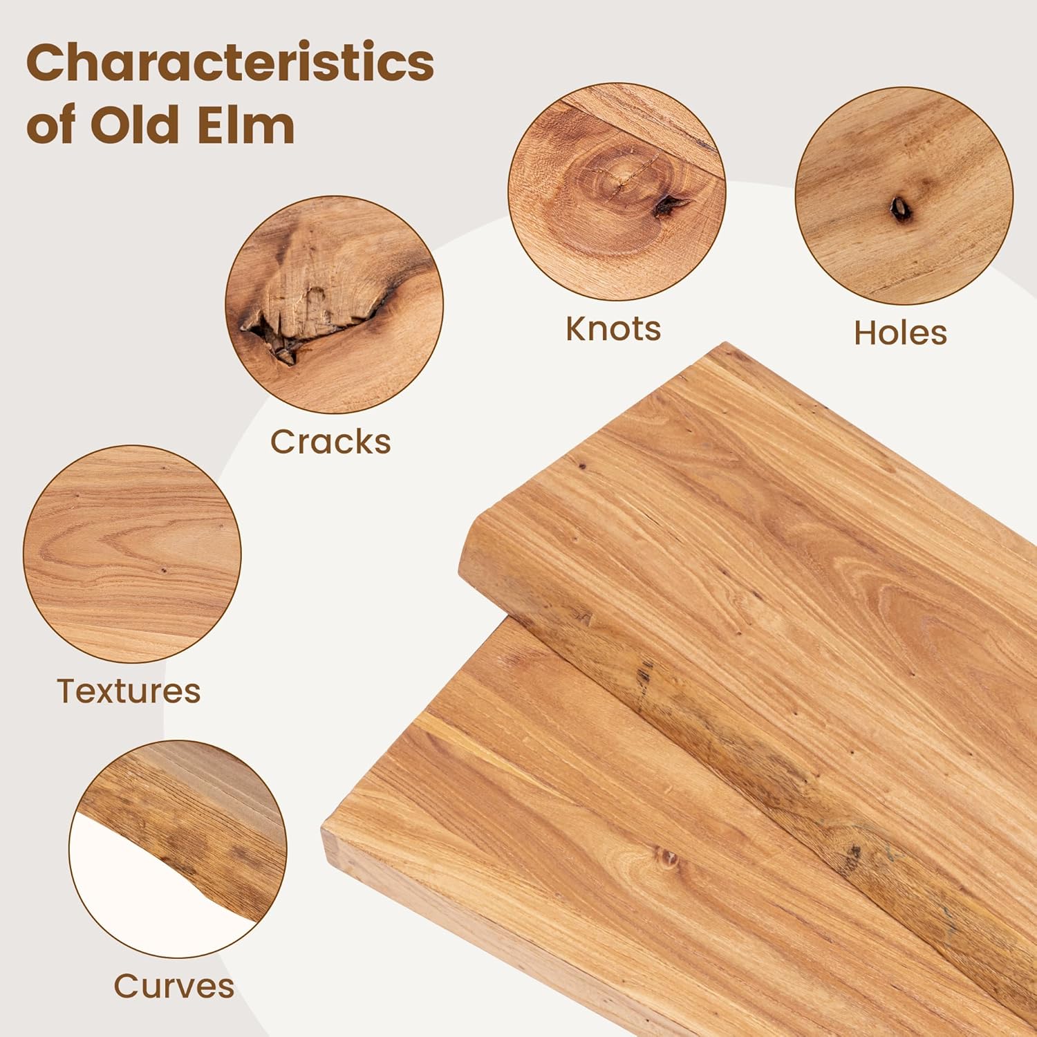 - UNIQUE ELM WOOD SHELVES: Handcrafted from reclaimed elm wood, each Venusmiles floating shelf showcases the natural beauty of wood knots, grain, and texture. The rustic, natural finish adds a unique touch to any living space, making it a distinctive addition to your home decor.
