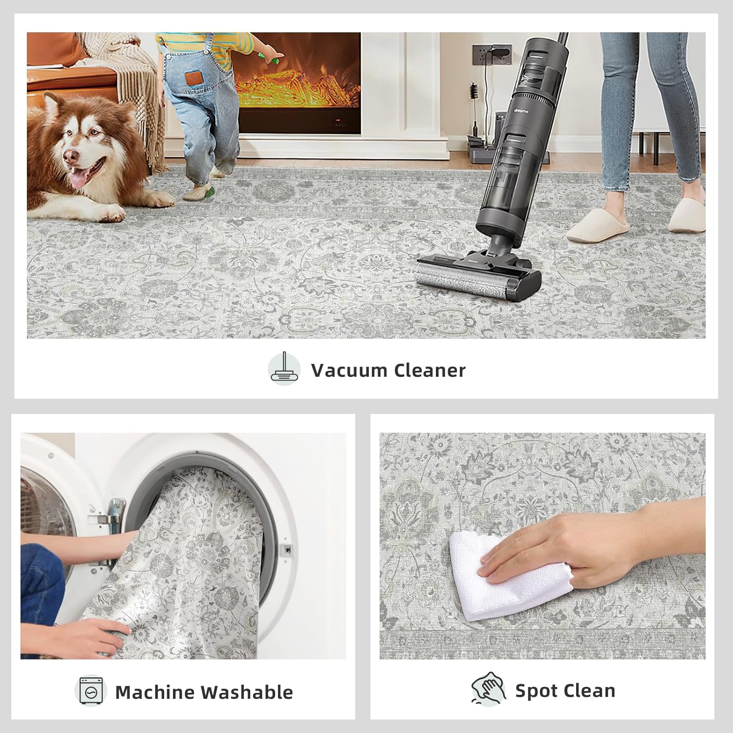 - [Non-Slip Backing]: The large area rug is made of snowflake-shaped TPE non-slip rubber backing takes more safety. The non slip rug is ideal for everyday indoor locations where kids or pets are active.