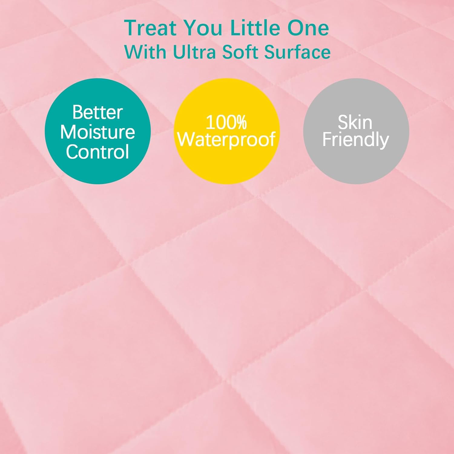 Pack and Play Sheets Fitted Waterproof Pack and Play Mattress Protector Pad Cover 2 Pack Pink Quilted 39" x 27"