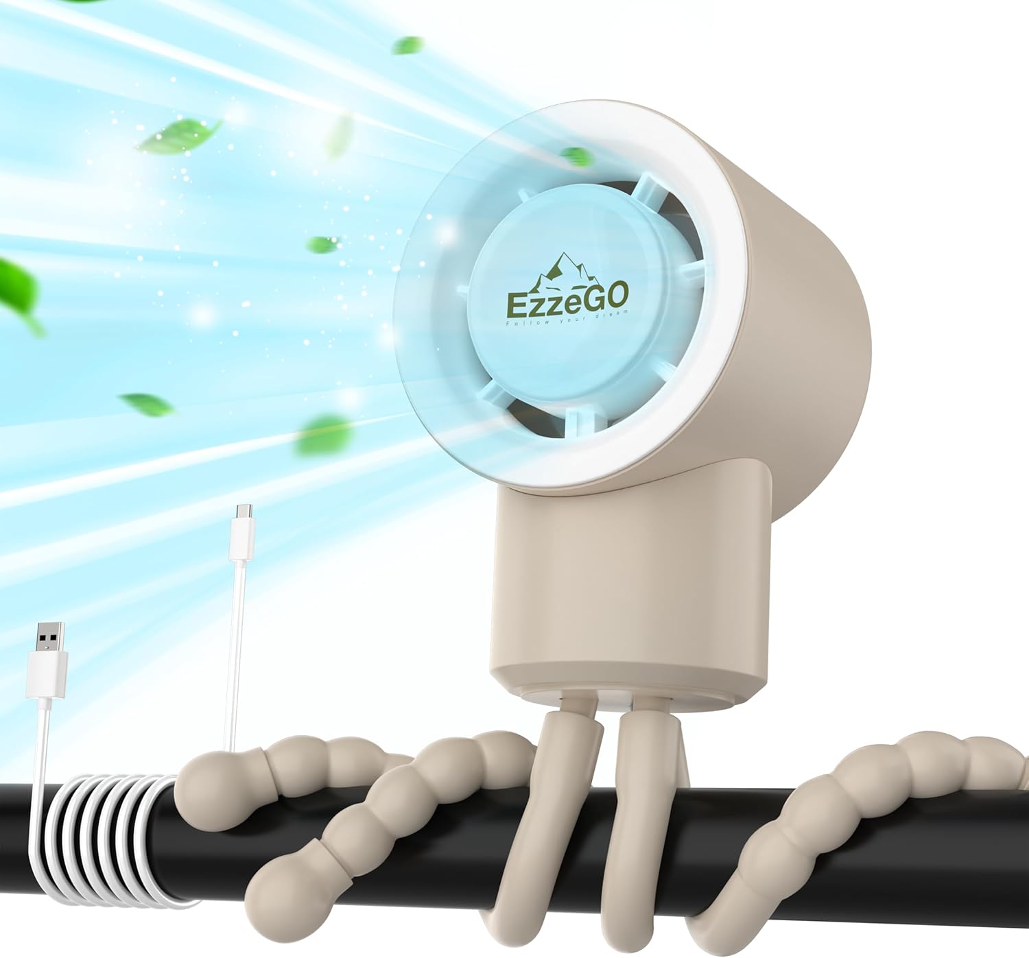 - 𝗦𝘁𝗮𝘆 𝗖𝗼𝗼𝗹 𝗼𝗻 𝘁𝗵𝗲 𝗚𝗼: This portable beige stroller fan is perfect for keeping your baby comfortable during walks, featuring a soft silicone flexible tripod that easily clips onto any stroller, crib, bed, car seat or treadmill