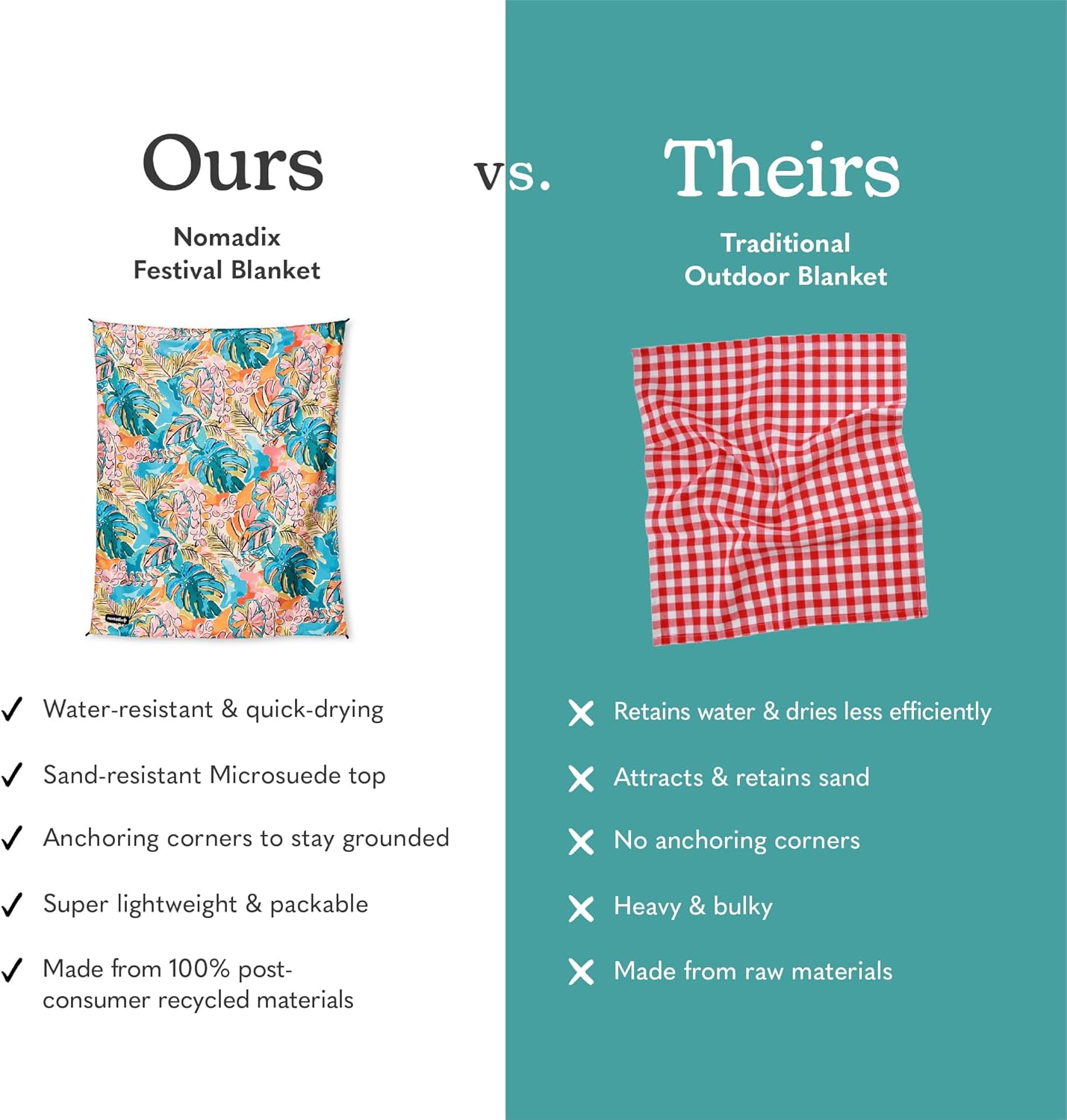 Nomadix Festival Blanket - Perfect for Picnics, Camping, & Lawn Seating - Plush Top & Water Resistant Base - Made with Post Consumer Recycled Materials - Jungle - 60x70