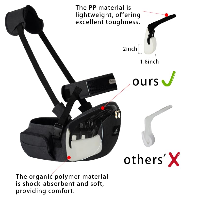 - 【Ultimate Comfort Designed】Our baby hip seat carrier is meticulously designed to ensure comfort for both you and your infant. While the carrier can be used on its own, wearing the shoulder strap will make it even easier for you. The shoulder strap evenly distributes your baby's weight across your shoulder, waist, and abdomen, reducing the pressure and fatigue on your body. The carrier features a 5.3 inches wide waist belt and thick sponge padding, effectively distributing the load to the waist.