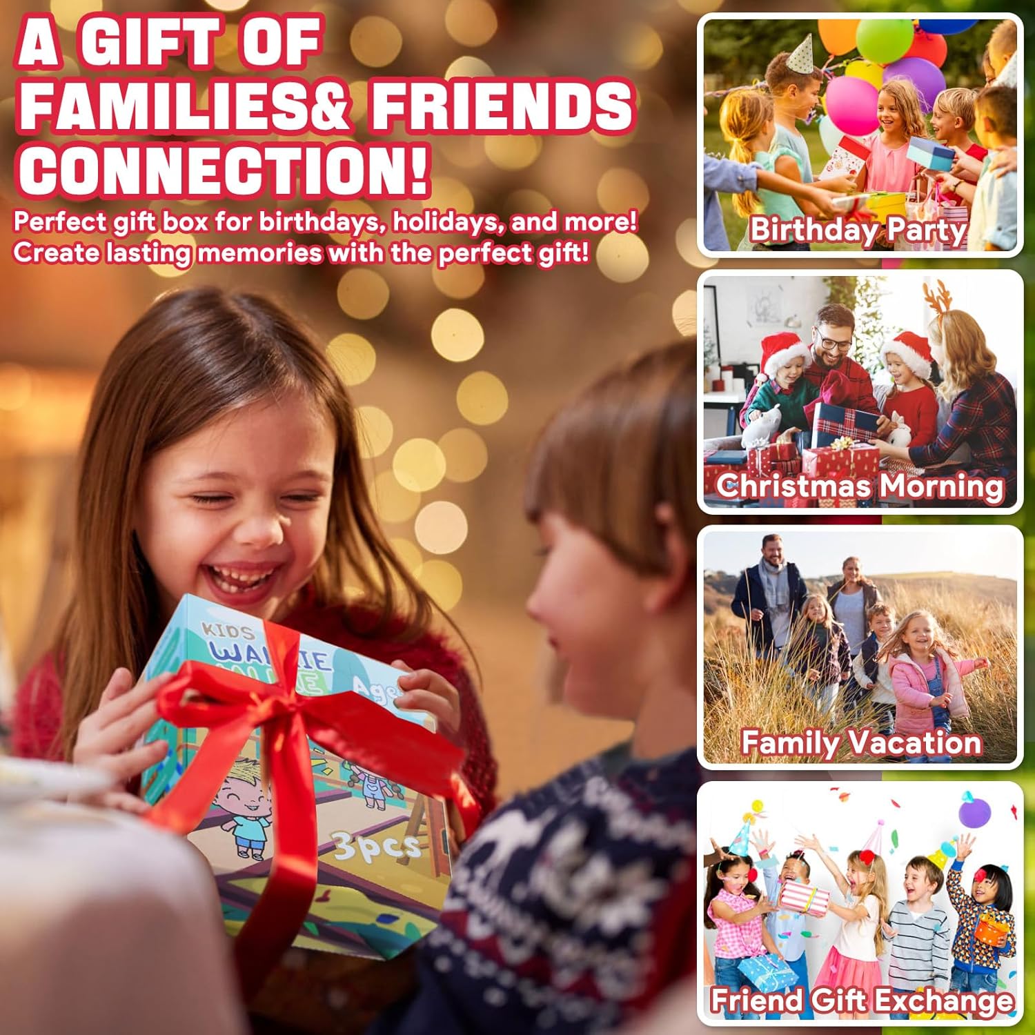 - Perfect Gifts Toys for Kids: Vvinca 3 packs walkie talkies for kids rechargeable are designed with a unique look. The Colorful kids walkie talkies are great choices as toys for boys and girls ages 3-12, it is as ideal birthday gifts, Christmas gifts, or other holiday gifts for children. Allows them to enjoy the fun of communicating, and playing with their families and good friends, suitable for indoors, hiking, camping, and other outdoor exploration. (No standalone lithium batteries are sold with the product.)