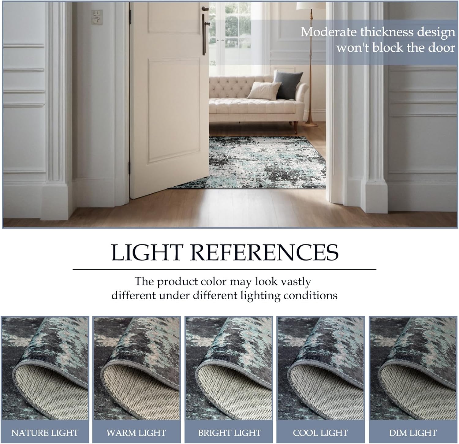 Washable Area Rugs 4'x6' Non-Slip Modern Abstract Soft for Living Room Entryway Bedroom Nursery, Print Pattern, Blue Black Teal