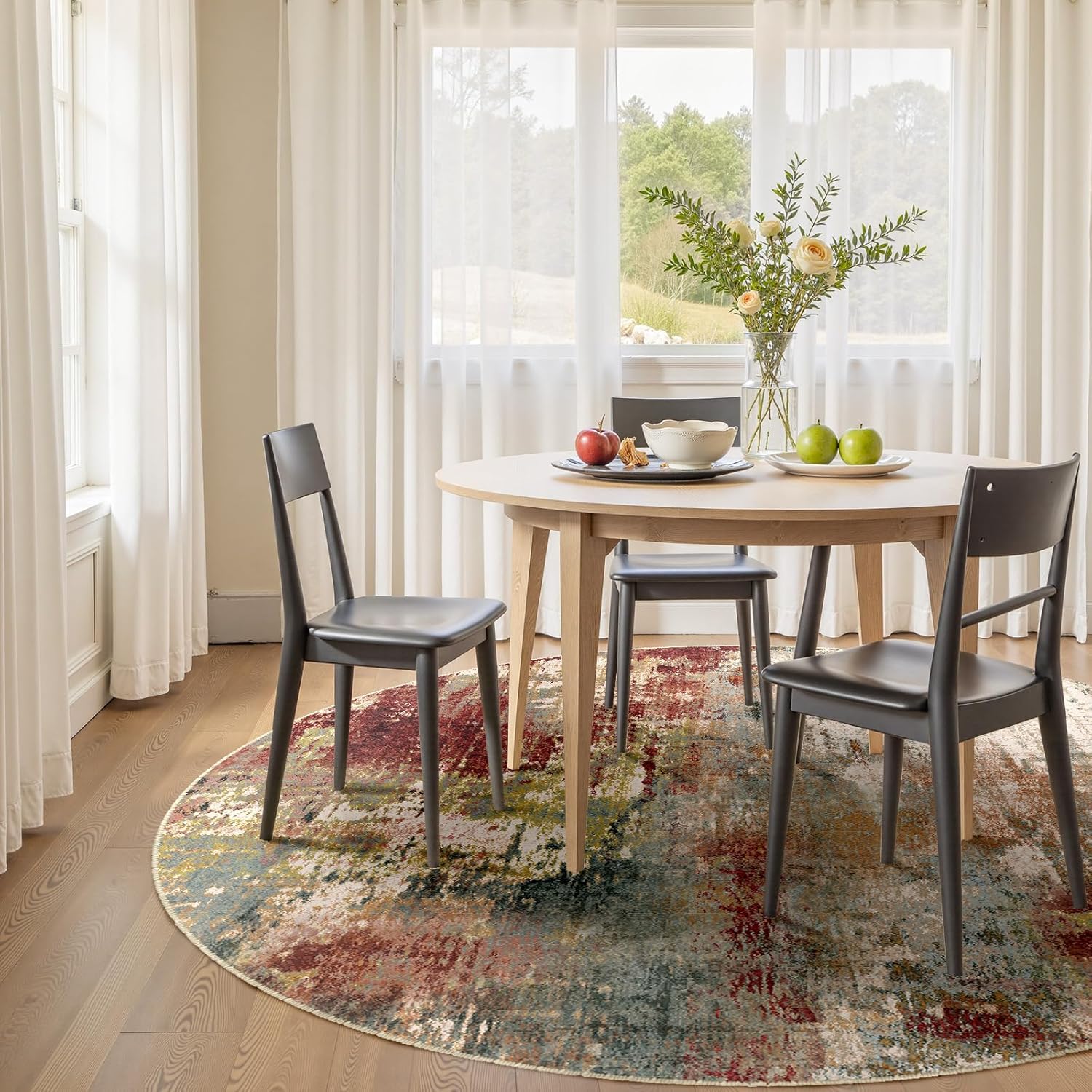 Washable Area Rugs 4ft Non-Slip Modern Abstract Soft for Living Room Entryway Bedroom Nursery, Print Pattern, Brown Rust Red Multi