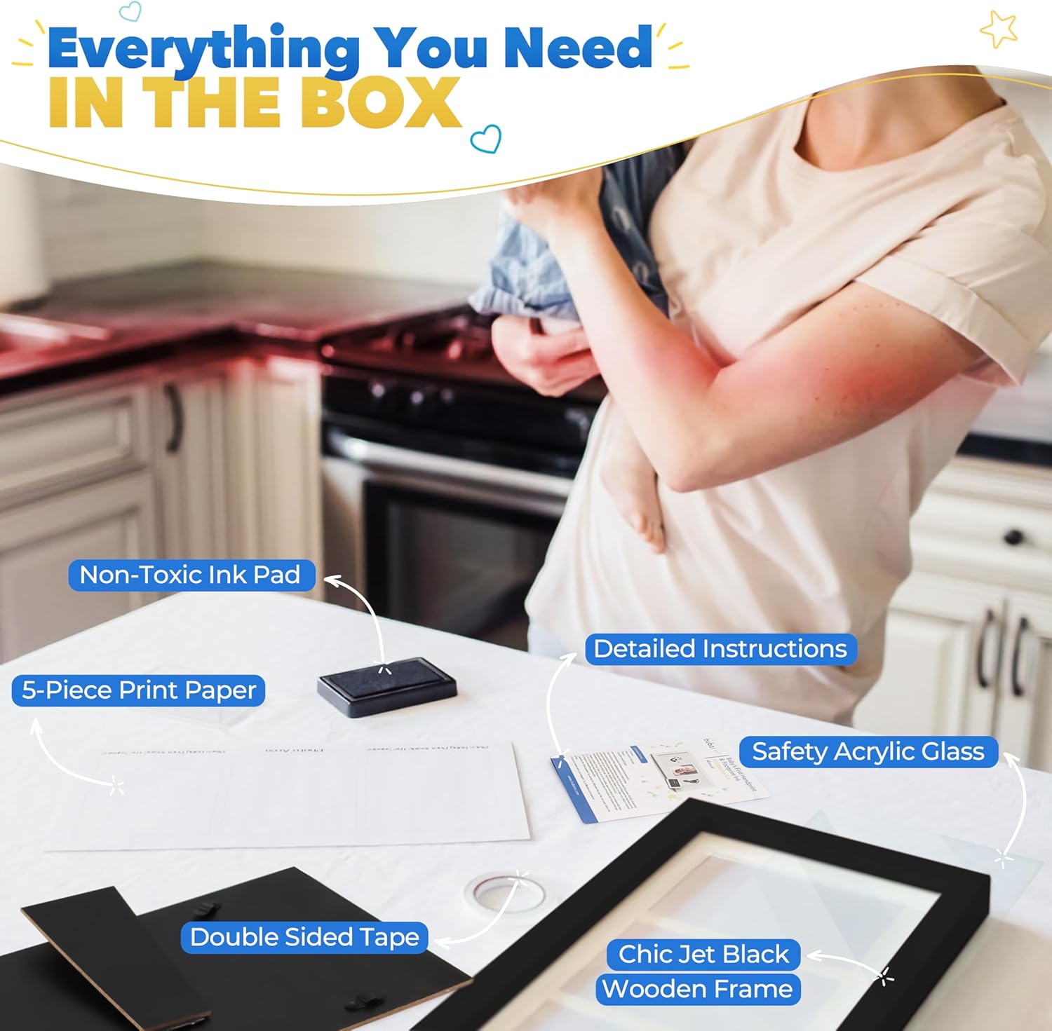 - Make Lasting Memories: A baby hand print & foot print kit makes priceless first memories for a new mom & dad. Gifts for new moms after birth are often discarded over time but with a newborn picture frame you can capture memories that will last a lifetime.