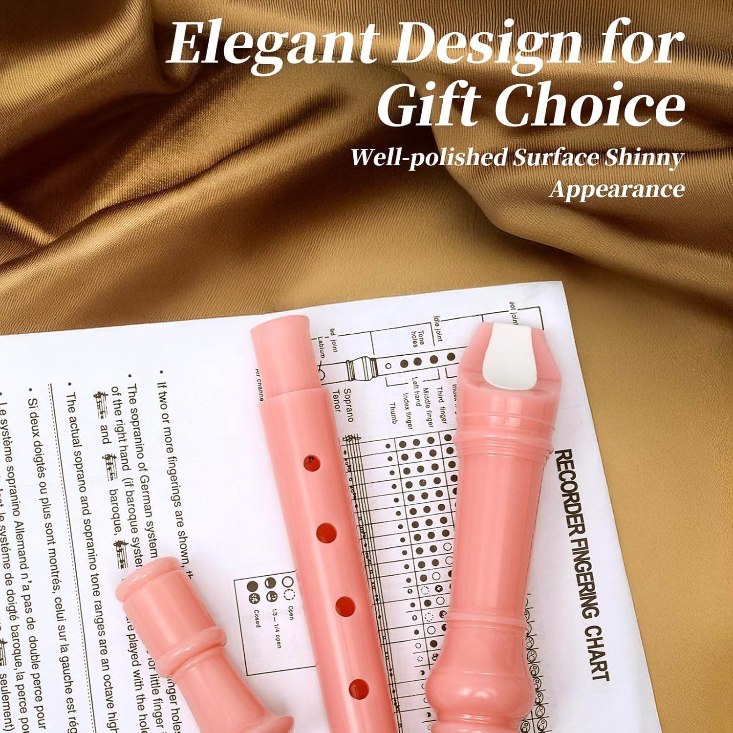 Soprano Recorder for Kids Beginners, German Fingering, C Key, 3 Piece with Cleaning Rod, Bag, Fingering Chart (Pink)…