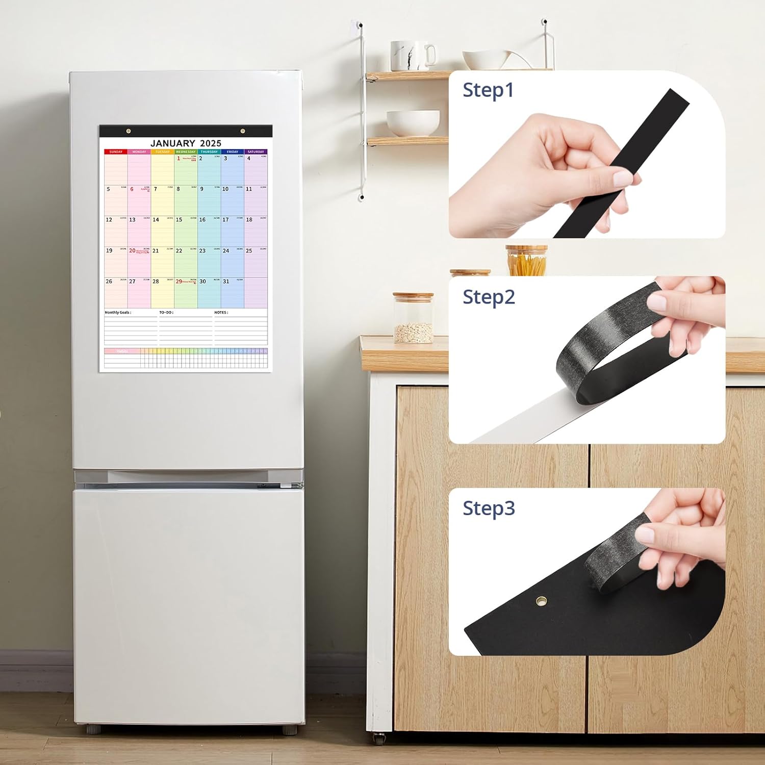 - Magnetic Calendar: Jan 2025 to June 2026 calendar with PVC Cover includes a magnetic strip, hanging rope, and 3 personalized stickers, ensuring no missing or duplicated months. Hang it on your fridge or wall for convenient placement. With 18 months, easily track your schedule and plan ahead effectively.