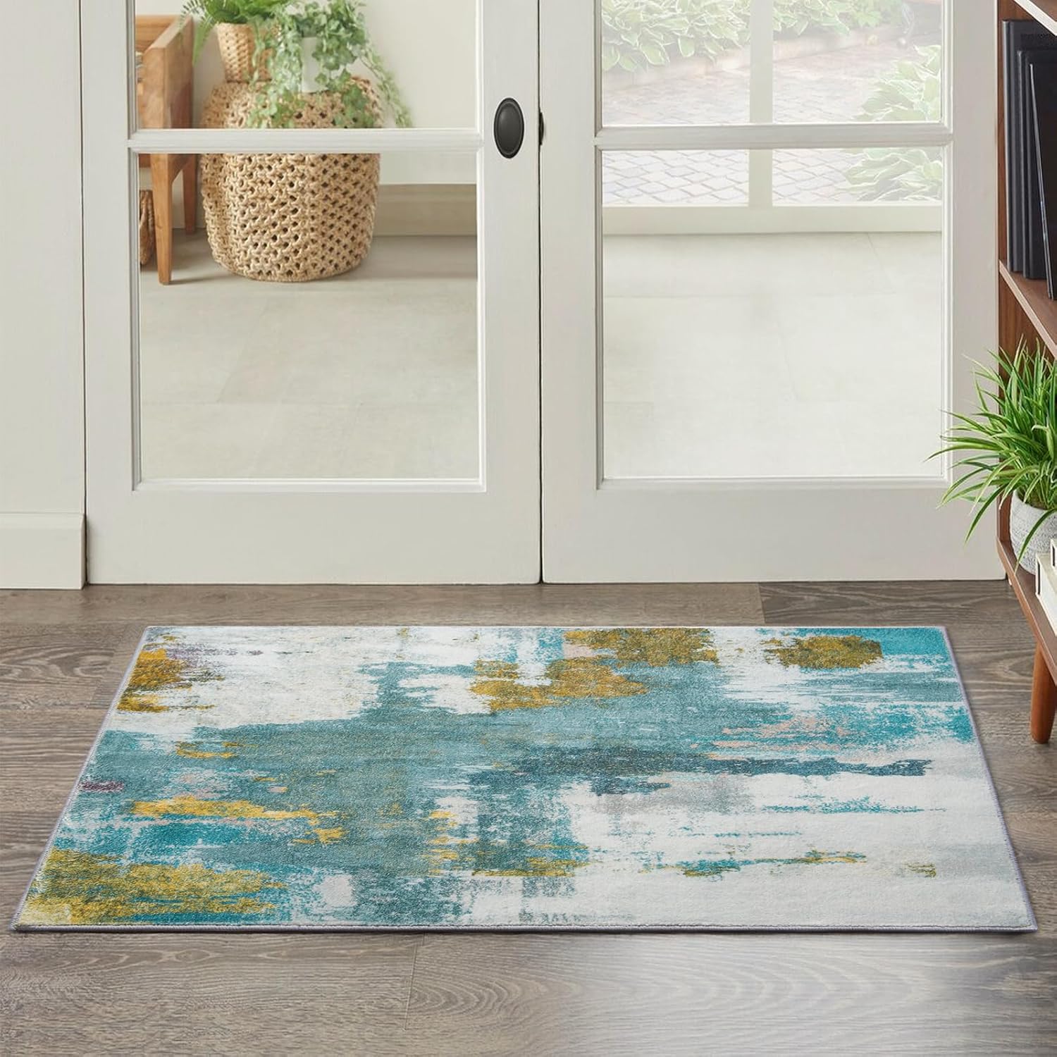Entryway Rug 2x3 Blue Rug, Washable Abstract Small Rugs Non-Slip Low Pile Throw Rugs for Kitchen Floor, Front Door, Bedroom Bedside