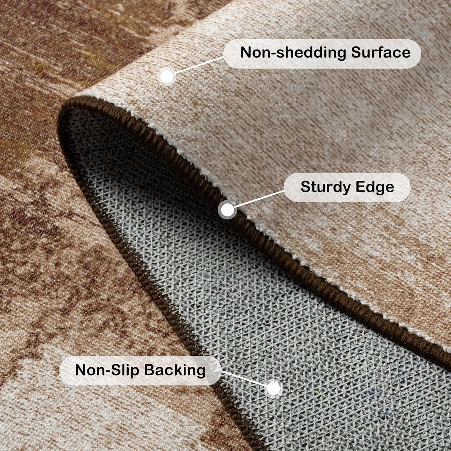 Kelarea Living Room Rug, 5x7 Rug Modern Abstract Washable Rugs Brown Foldable Faux Wool Vintage Carpets, Non Slip Rug for Bedroom, Dining Room, College Dorm, Kids Playroom, Home Office