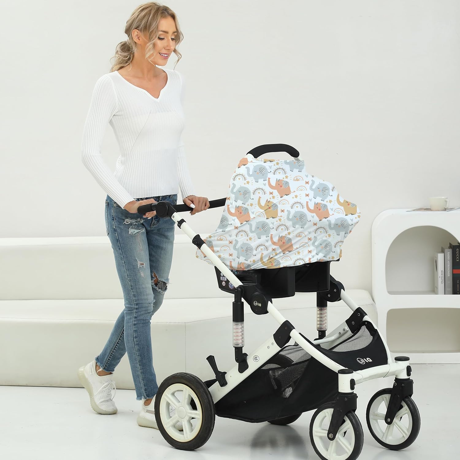 Breathable Car Seat Cover for Babies – Multi-Purpose Soft Rayon Nursing Cover for Breastfeeding, High Stretchy Infant Carseat Canopy, Stroller Cover (Smooth Rayon, Cute Elephant)