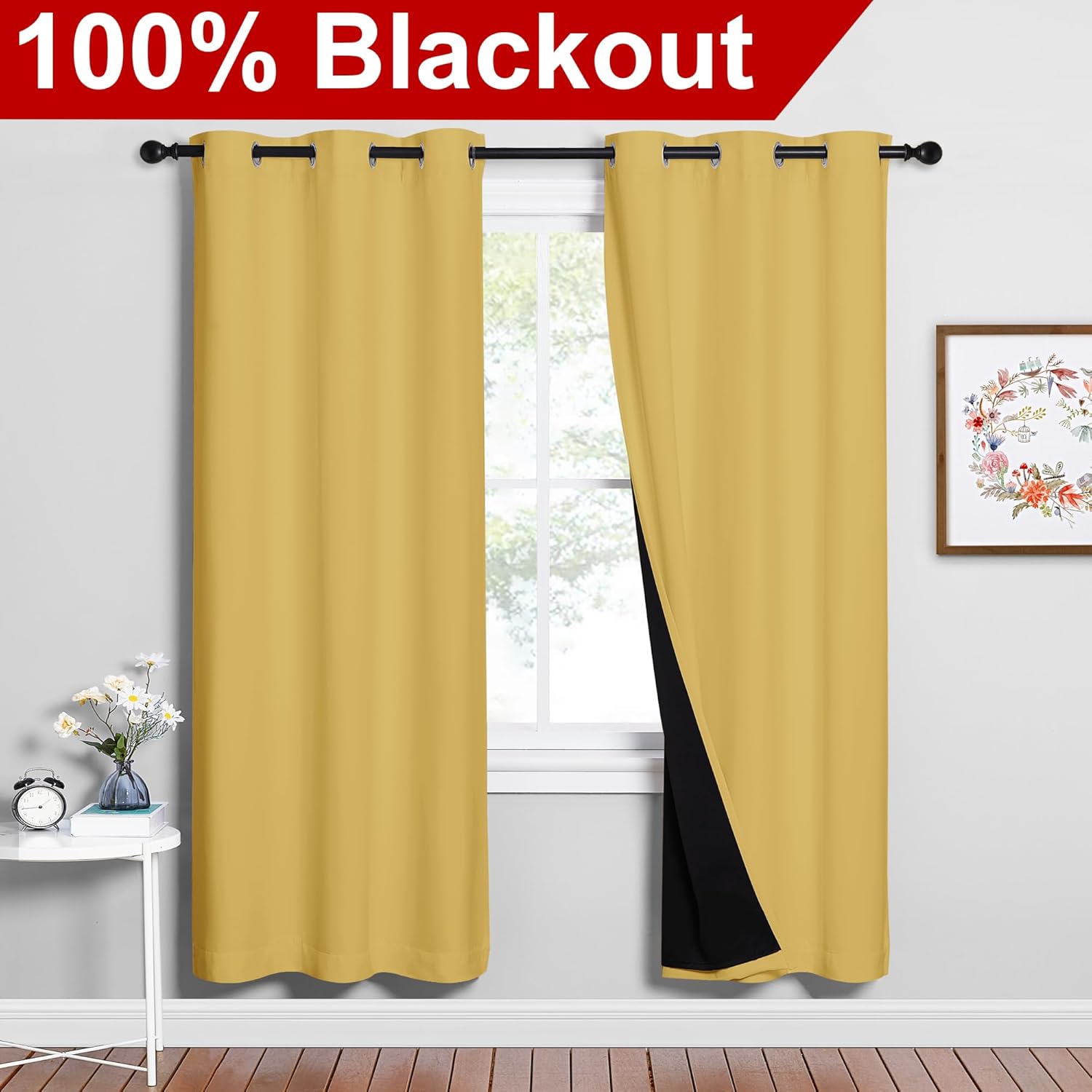NICETOWN Bright Yellow Full Shade Curtain Panels, Pair of Energy Smart & Noise Blocking Out Blackout Drapes for Dining Room Window, Thermal Insulated Guest Room Lined Window Dressing(42 x 72 inch)