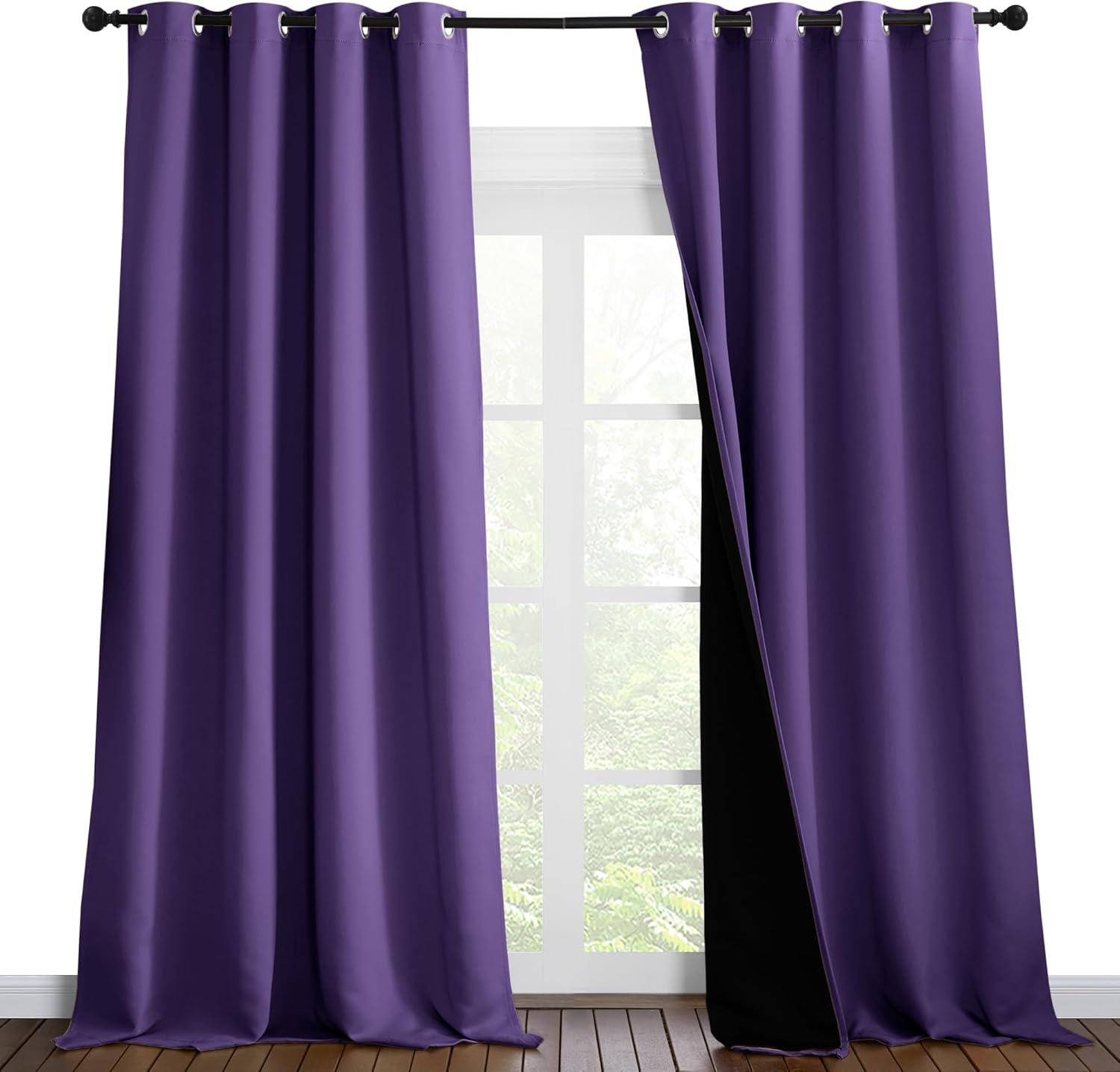 NICETOWN Total Shade Curtains and Draperies, Heavy-Duty Full Light Shading Drapes with Black Liner Backing for Villa/Hall/Dorm Window(Lilac Purple, Package of 2 Panels, 55 inches Wide x 96 inches Long
