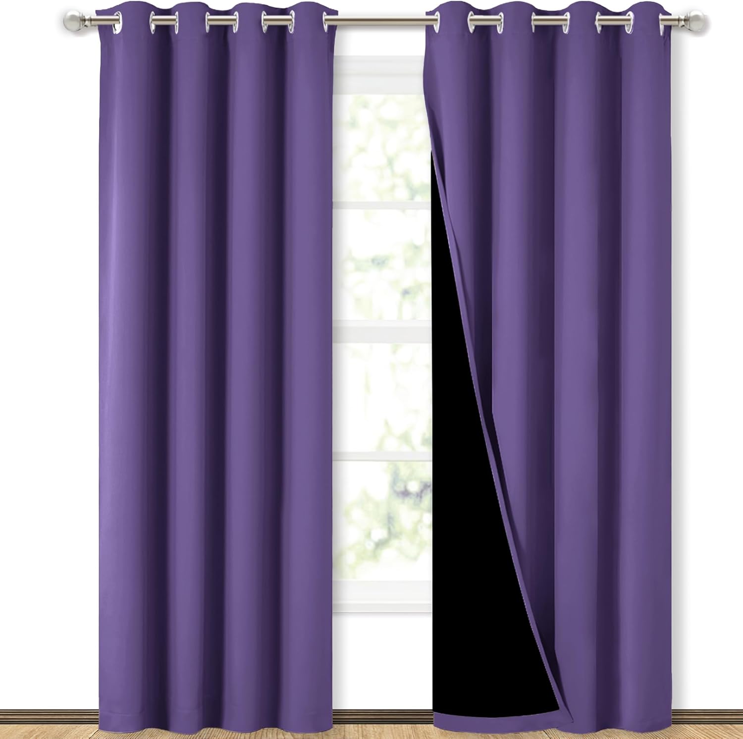 NICETOWN Lilac Purple Full Shade Curtain Panels, Pair of Energy Smart & Noise Blocking Out Blackout Drapes for Dining Room Window, Thermal Insulated Guest Room Lined Window Dressing(52 x 84 inch)