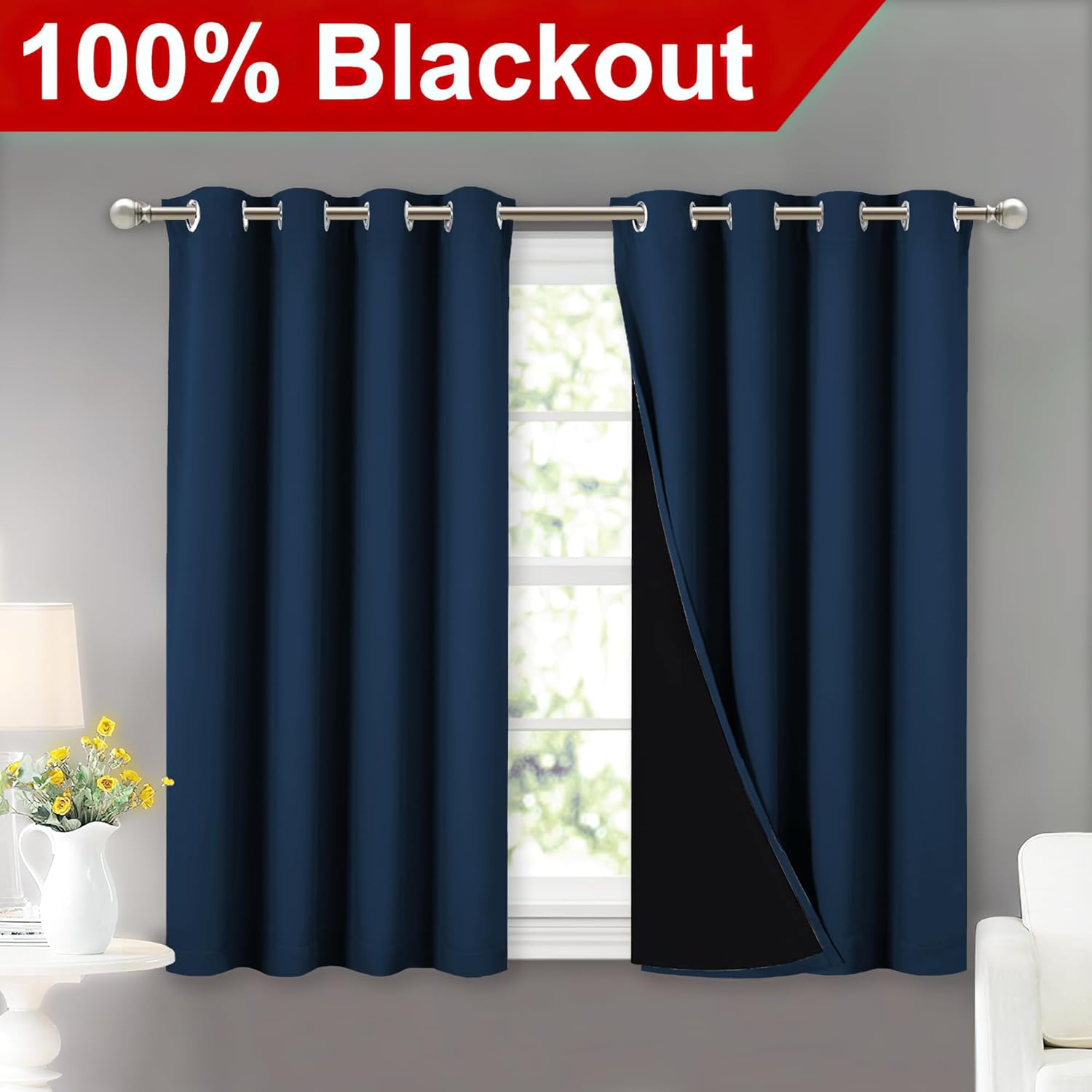 NICETOWN 100% Blackout Curtains with Black Liners, Thermal Insulated Full Blackout 2-Layer Lined Curtains, Energy Efficiency Window Draperies for Dining Room (Moroccan Blue, 2 Panels, 52" W by 45" L)