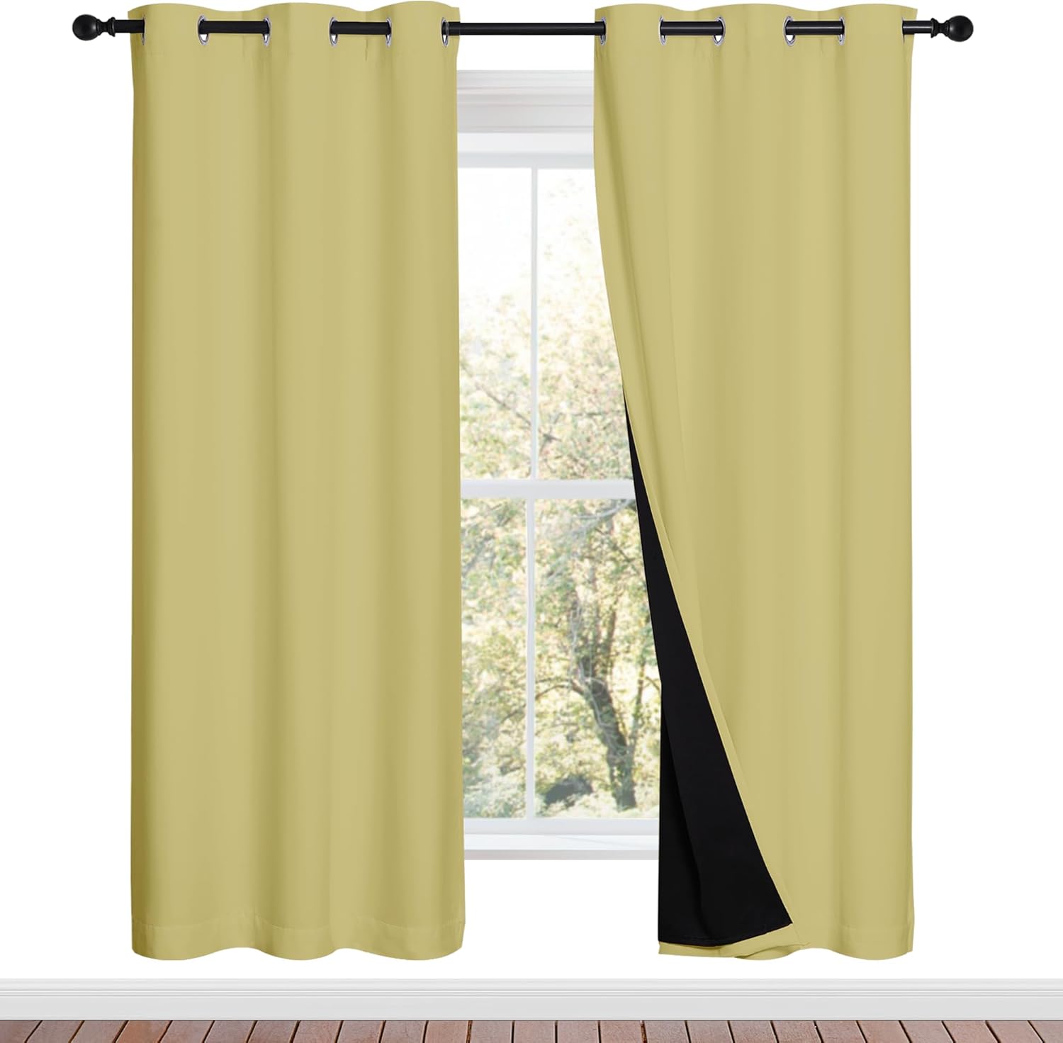 NICETOWN Paler Yellow Full Shade Curtain Panels, Pair of Energy Smart & Noise Blocking Out Blackout Drapes for Dining Room Window, Thermal Insulated Guest Room Lined Window Dressing(42 x 72 inch)