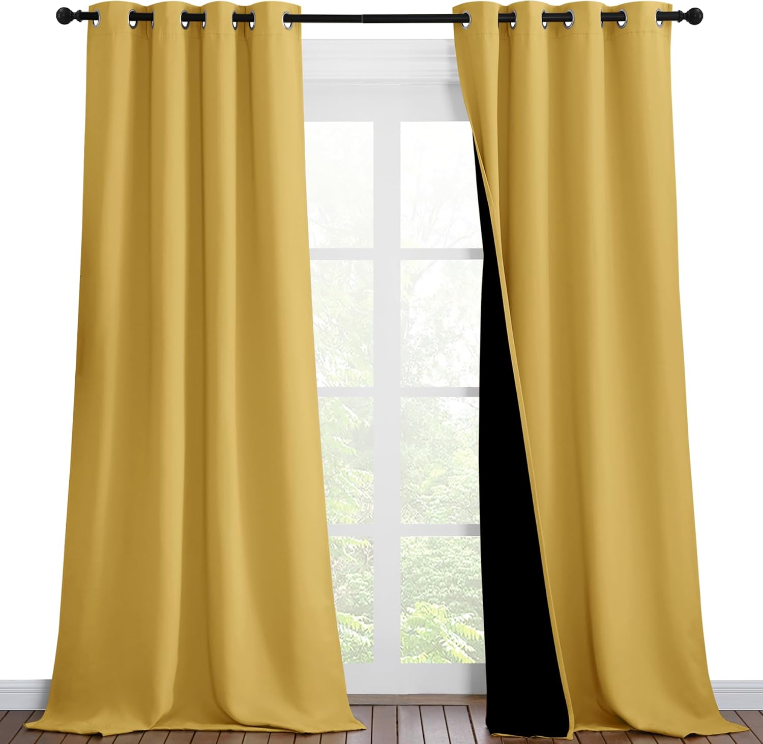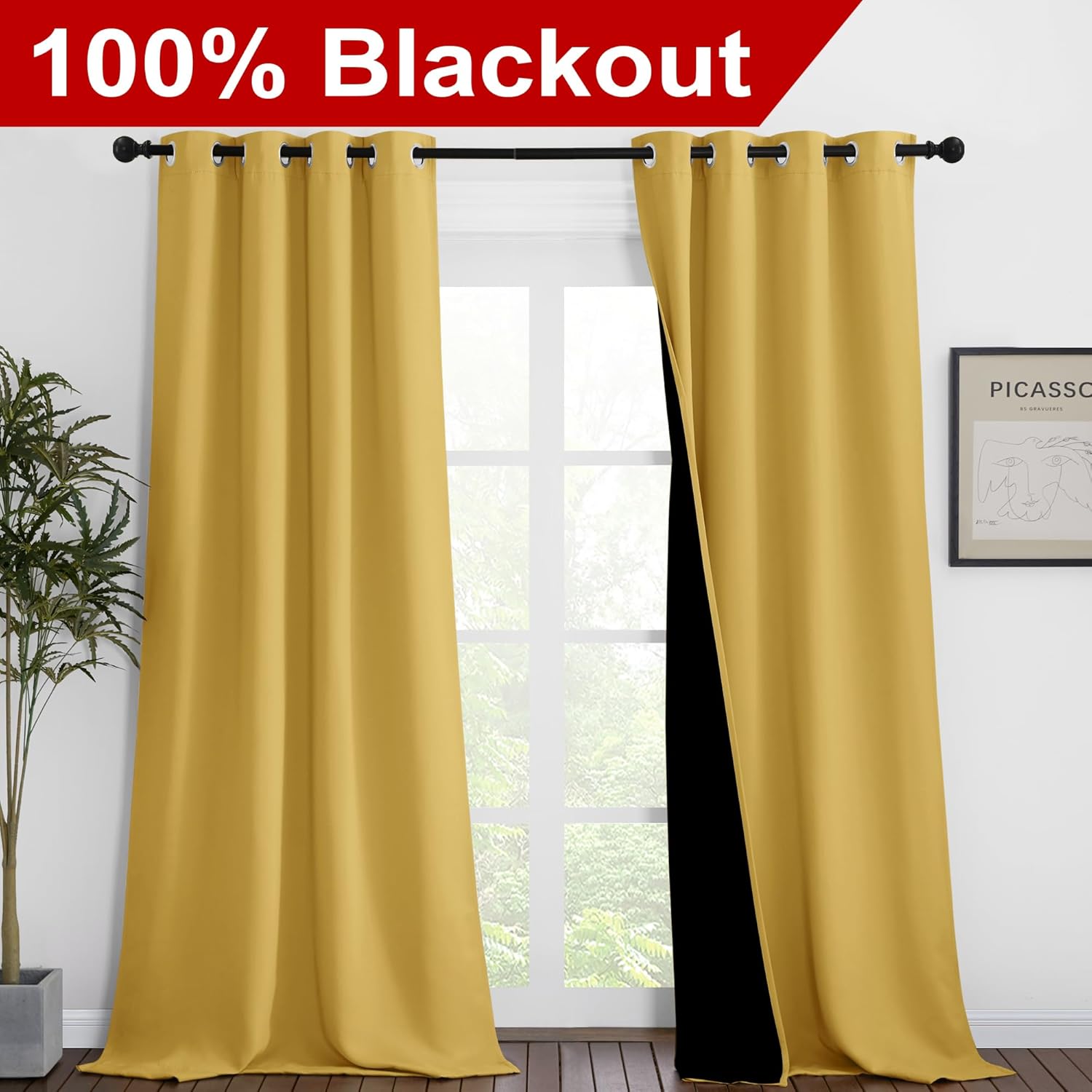 NICETOWN 100% Blackout Blinds, Set of 2, 46 inches x 102 inches, Laundry Room Decor Window Treatment Curtains for Large Patio Sliding Door, Thermal Insulated Bright Yellow Curtains for Bedroom