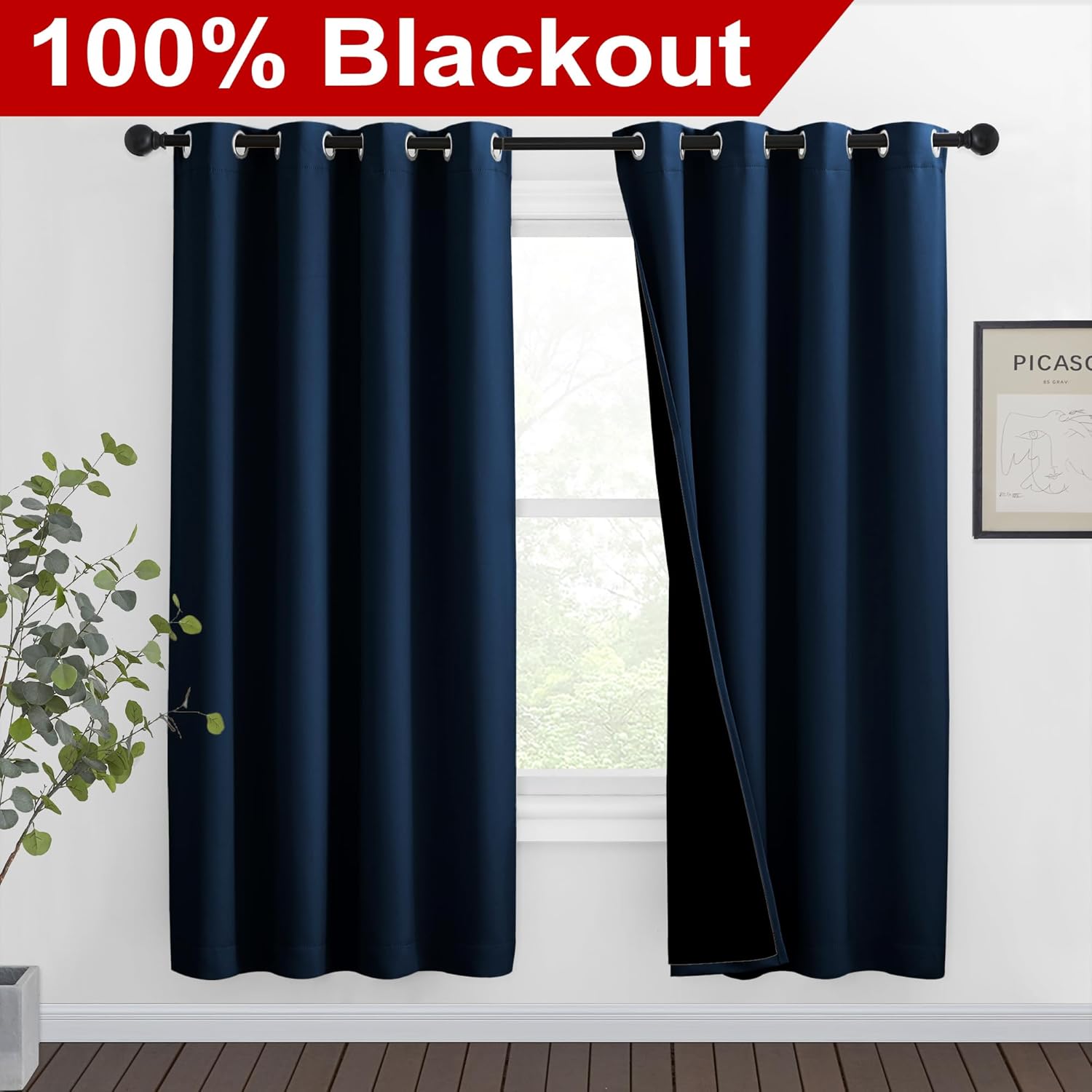 - 100% BLACKOUT: The real blackout curtains on the market. Sew in black liner backing makes the drapes thick enough to completely keep out the 100% SUNLIGHT and UV RAY. The greatest benefit is to offer you a real dark environment, bringing you a good night's sleep during the day.
