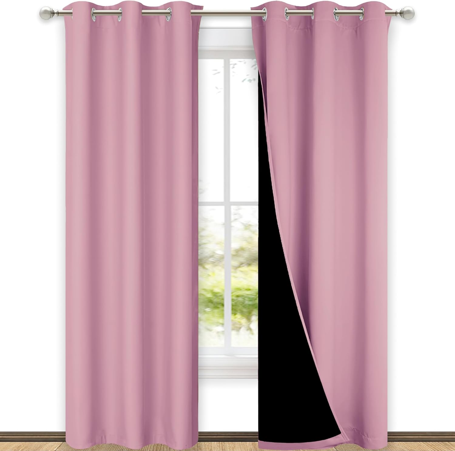 NICETOWN Blackout Curtains 80 inches Long, Full Light Blocking Drapes with Black Liner for Nursery, Thermal Insulated Draperies for Hall, Villa (Crystal Pink, 2 Pieces, 42" Wide Each Panel)
