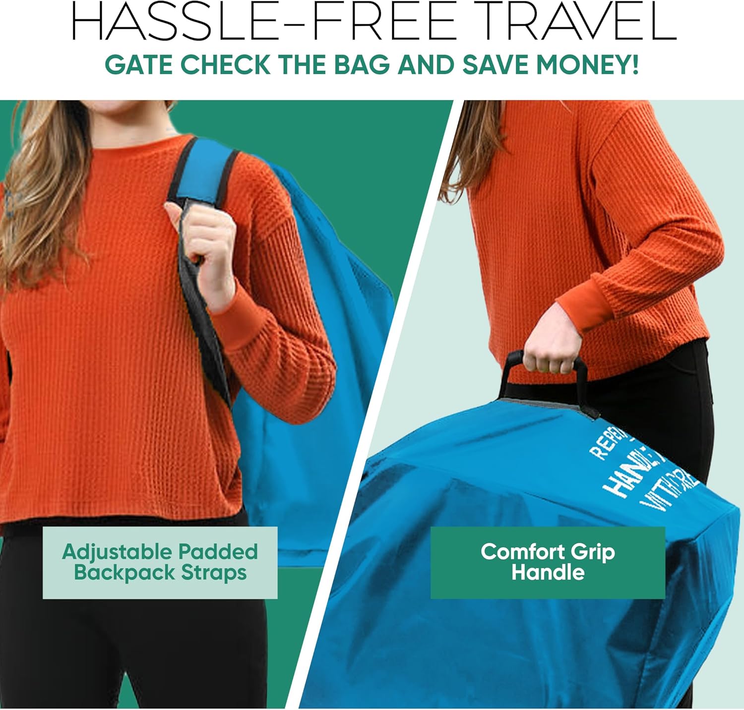 - Durable High-Performance Polyester – Constructed with tear-proof, double-stitched polyester fabric, this stroller bag ensures lasting protection for your stroller during airplane, train, and car travel. Built for frequent use with superior durability.