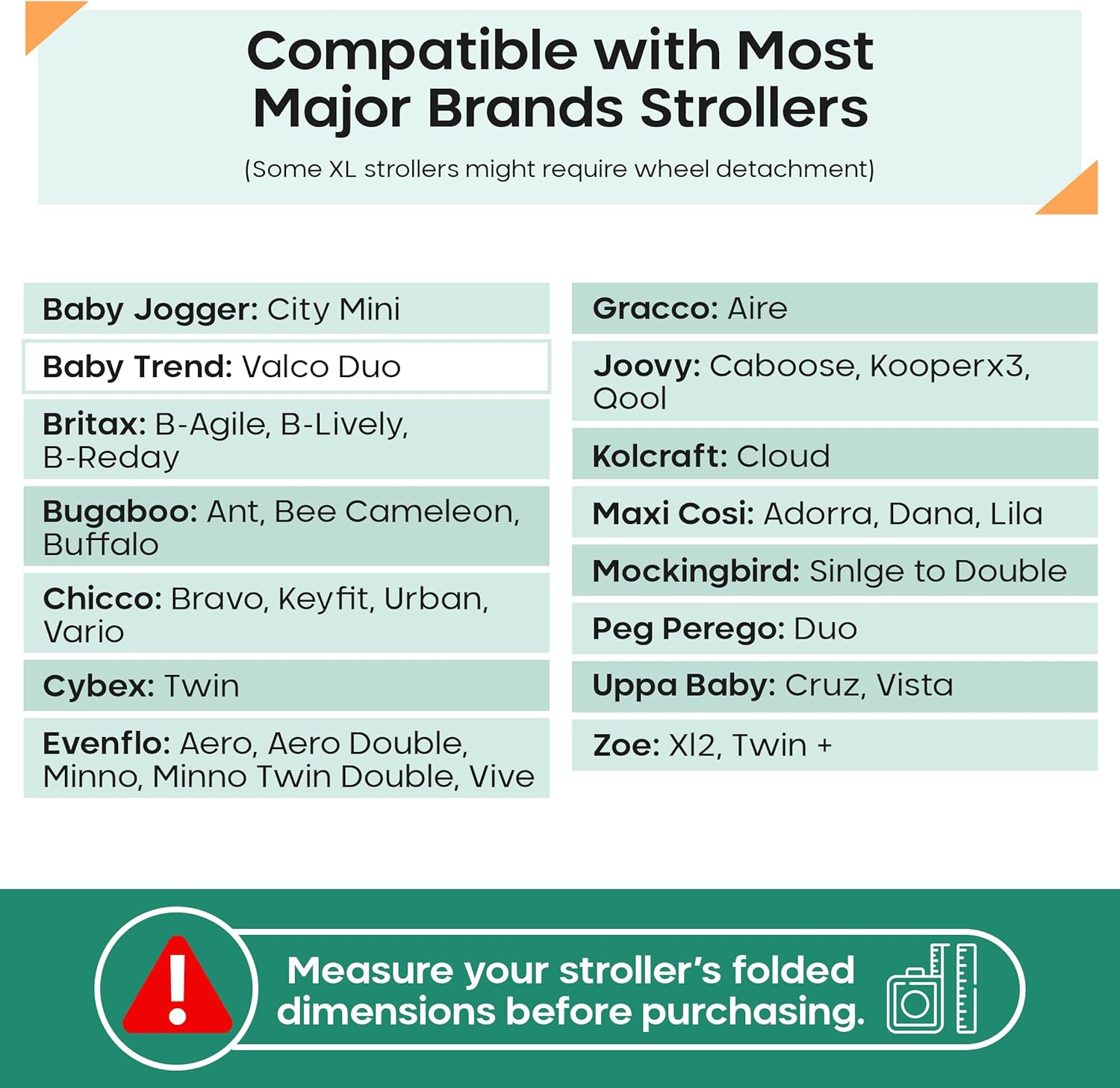 - Universal Compatibility – Measuring 42” H x 26” W x 13” D, this bag fits most single jogging strollers, making it a versatile and reliable choice for families on the go. Compatible with popular stroller brands and models.