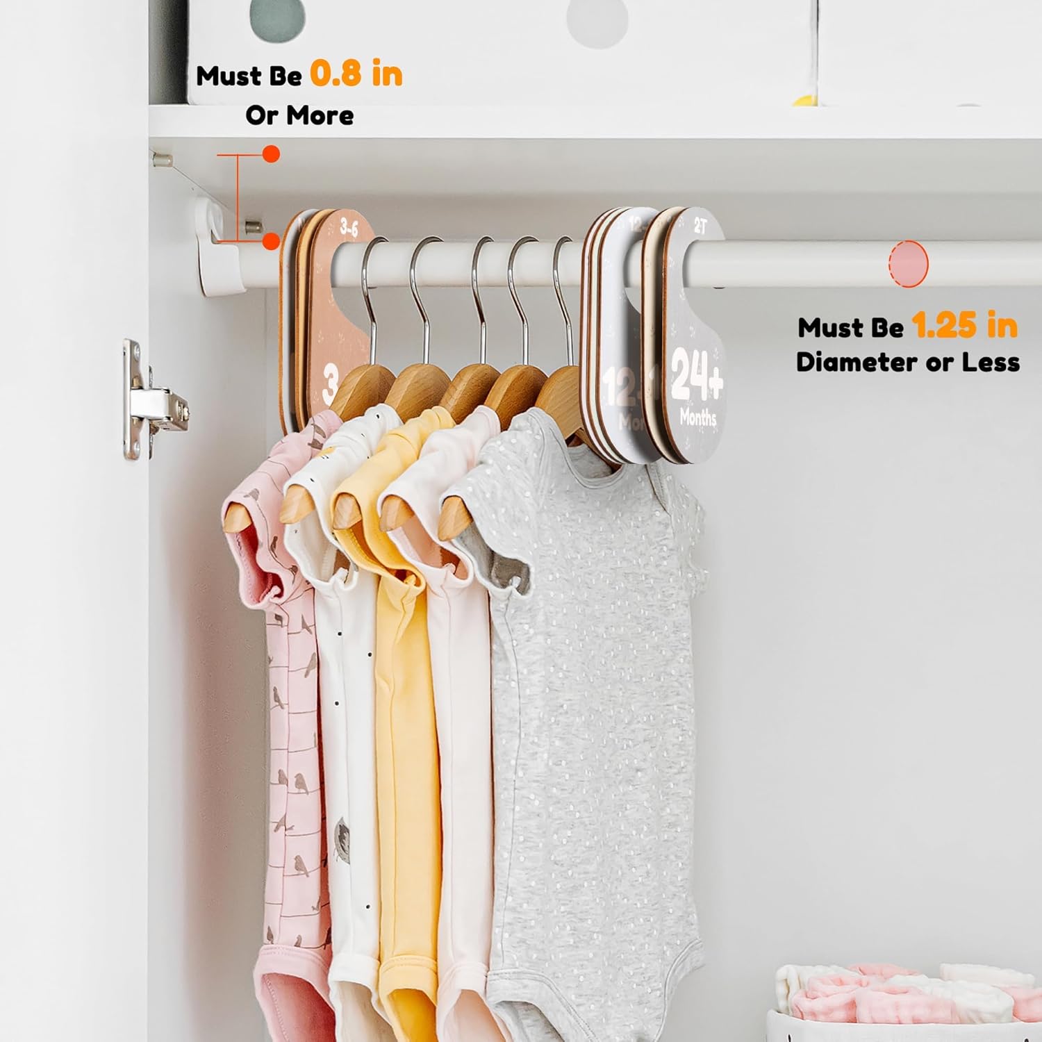 Baby Closet Dividers for Clothes Organizer - Set of 8 Adorable Wooden Double-Sided Baby Clothes Size Hanger Organizer from Newborn to 24+ Months for Nursery Beautiful Minimalist Decor