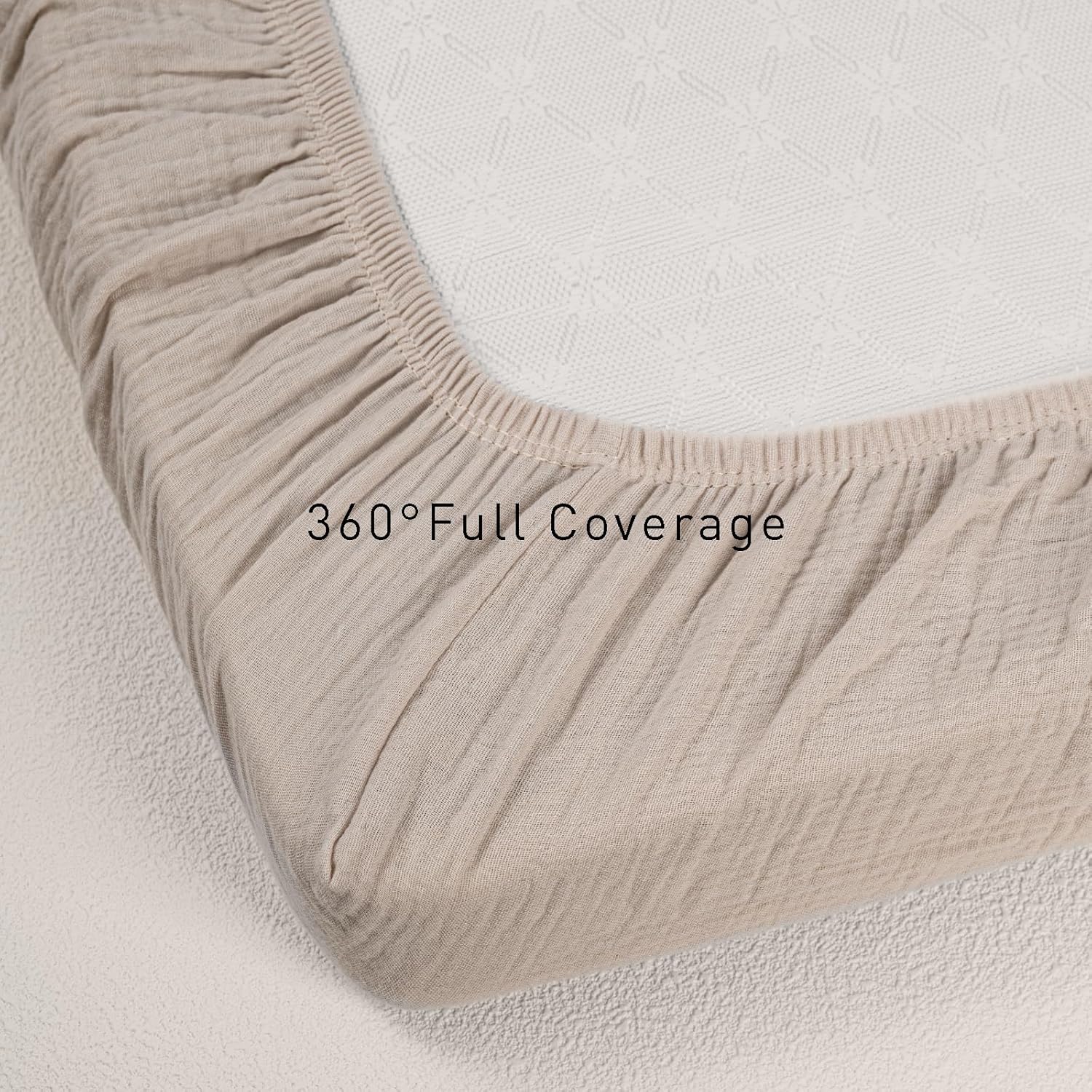 - MUSLIN COTTON: Are you looking for the perfect baby bed sheets? Look no further than our Gllquen Baby pack and play sheets! Made with 100% muslin cotton, these baby sheets have excellent air permeability and moisture-absorbing properties that keep your baby's skin dry and comfy, providing comfortable care and a good night's sleep. Rest assured, every product meets the OEKO-TEX Standard 100 and is safe for babies