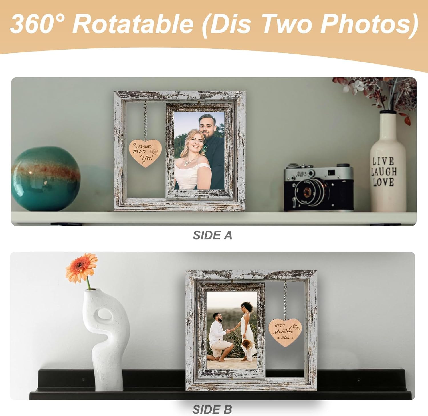 - Distressed White Design: Double sided rotating novelty fiance gifts for women are made of lightweight wood with a unique design distressed wood texture finish, display engagement frame anywhere for a timeless reminder of a beautiful relationship