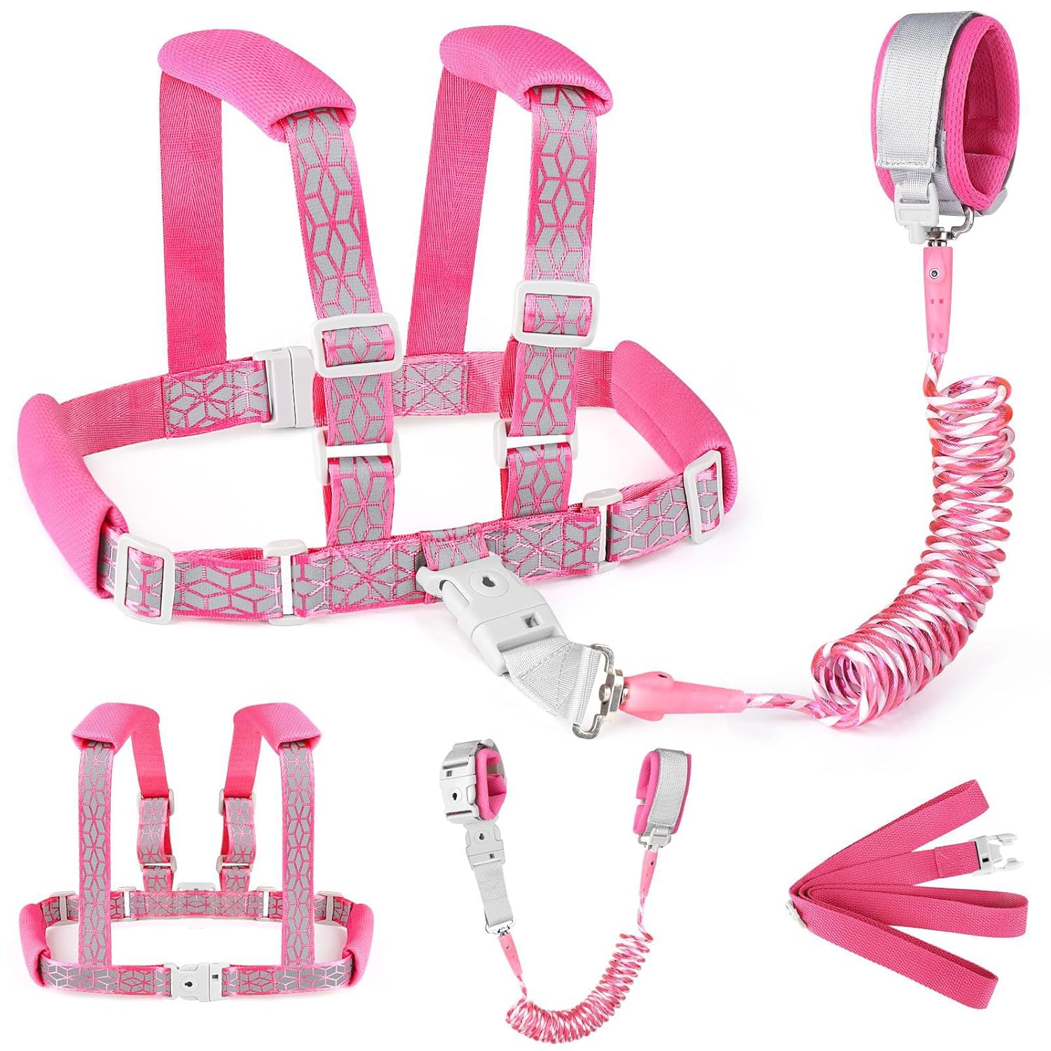 - 3 Different Usage: ①Children wearing as a harness with leash; ② Children wearing as a harness with anti lost wrist link; ③ Using the anti lost wrist link both on parent’s and kid’s hands. 3 different usages can meet your various DIY combination needs, suitable for all kinds of outdoor scenes. Multi-functional products can bring you wonderful buying experience