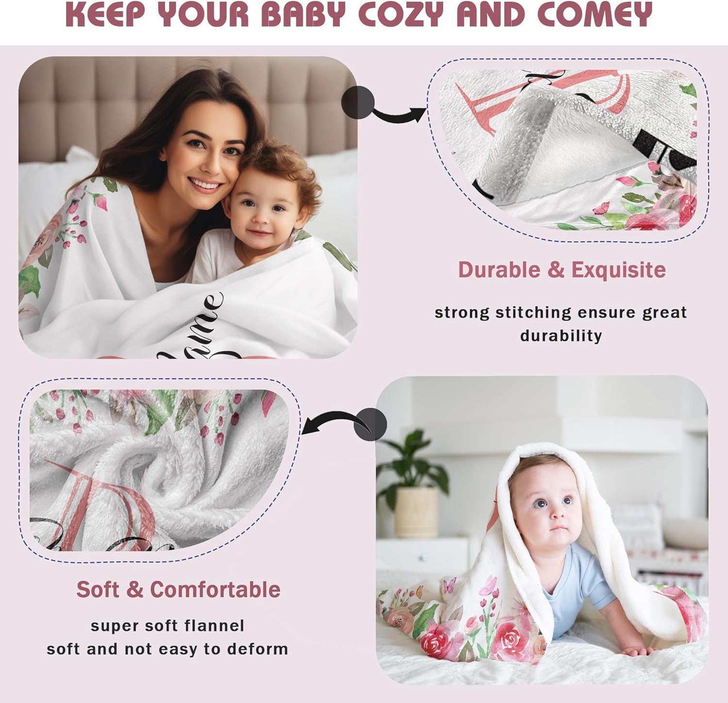Custom Floral Rose Blanket with Name Personalized Name Blanket for Girl Newborn New Baby Customized Gifts for Baby Shower Christmas Birthday