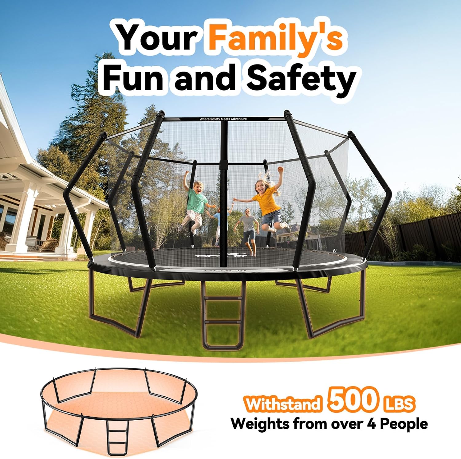 BCAN 8FT 10FT 12FT 14FT 15FT 16FT Recreational Trampoline with Enclosure for Kids Adults, ASTM Approved, Outdoor Trampolines with Ladder for Kids