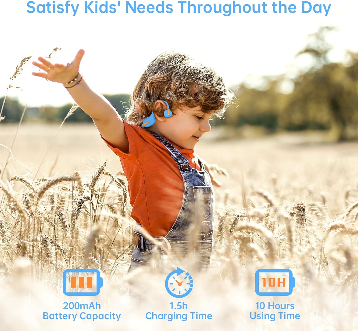 - [Safer Design] Wearing our air conduction kids headphones wireless with built-in microphone provides directional, quality audio that won't interfere with hearing any of the outside world around them, so your kids can hear clearly when a car is approaching from behind.