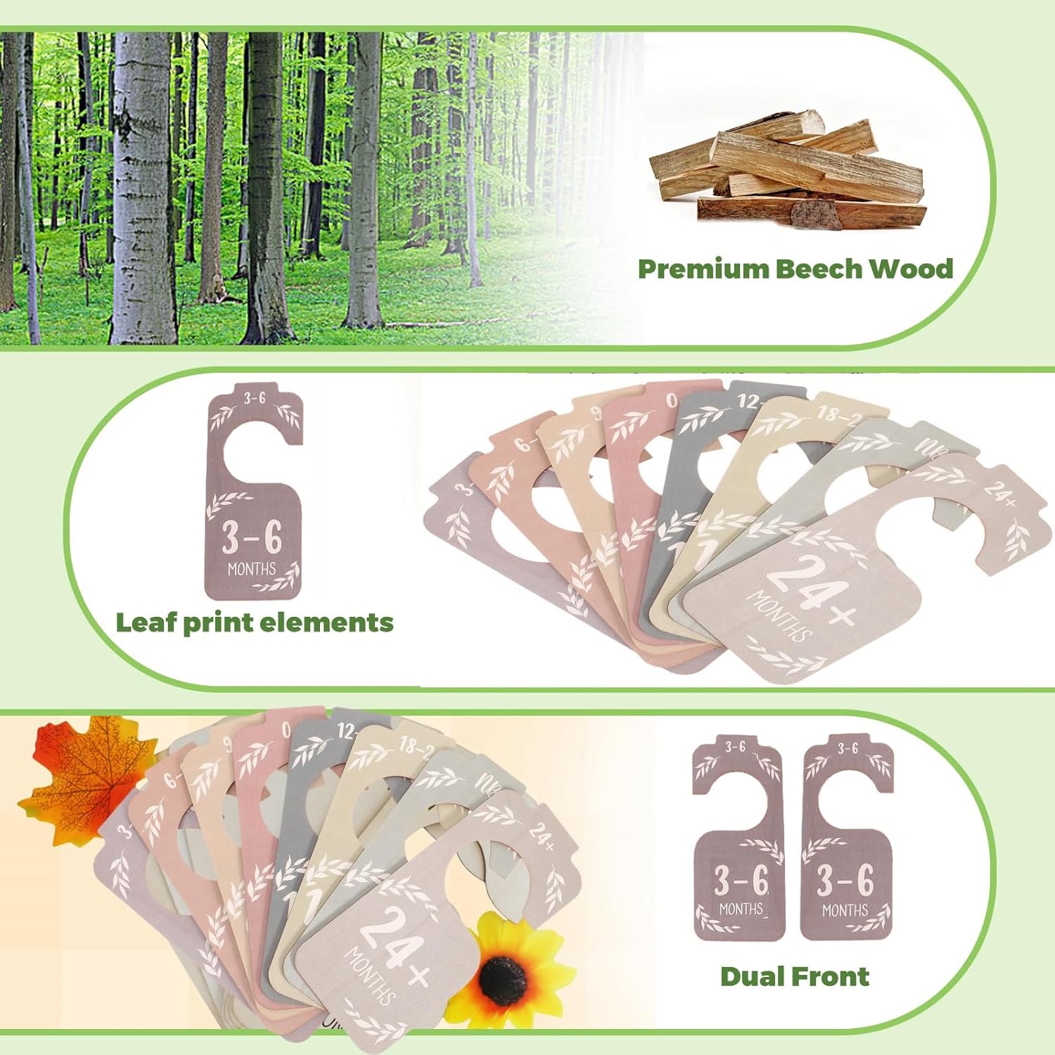 - High Quality Product: Made of natural wood, these baby closet hangers dividers are eco-friendly and won’t break or crack easily.The double-sided colorful print makes the baby clothes organizer a real eye-catcher in the closet.