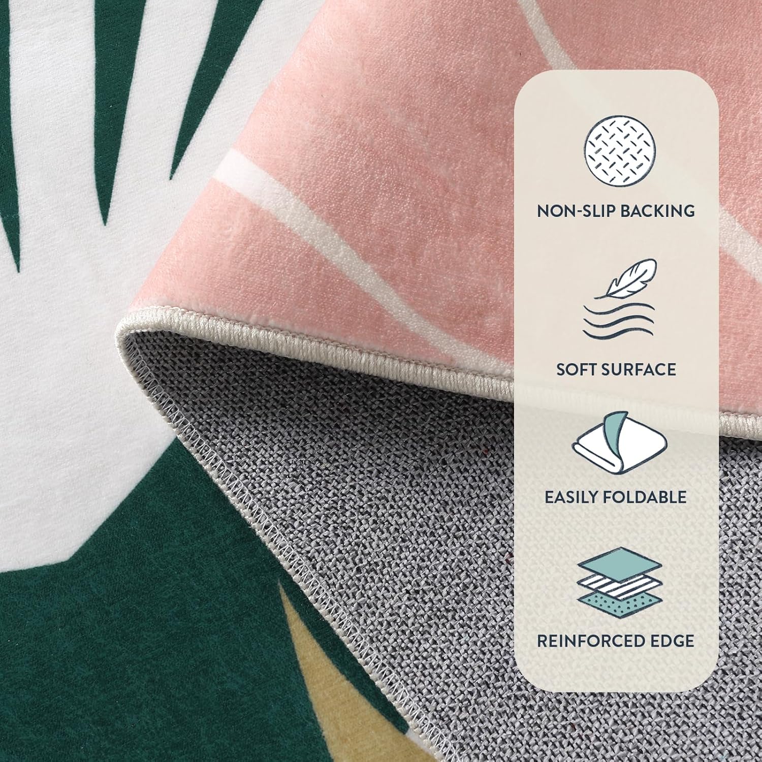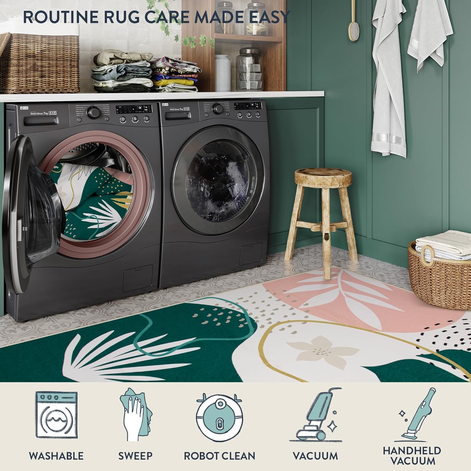 Lahome Washable Rug 5x7 - Rugs for Living Room 5x7 Non-Slip Ultra-Thin Carpet for Bedroom Cute Soft Kids Nursery Rug, Boho Botanical Print Indoor Floor Rug for Entryway Office (5'x7',Green/Pink)