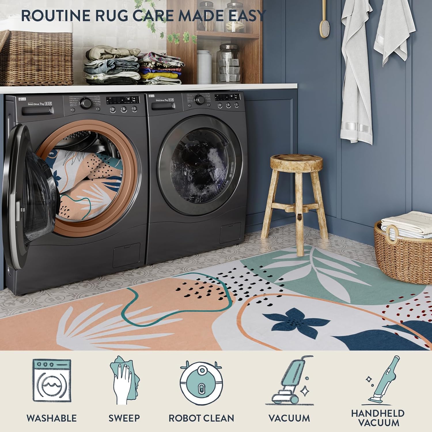 - Machine Washable Rugs: Lahome washable rugs are created to make maintenance a breeze. Use a handheld small vacuum cleaner to remove the dust or hair for daily care. Wipes up spills on the surface of the rug directly