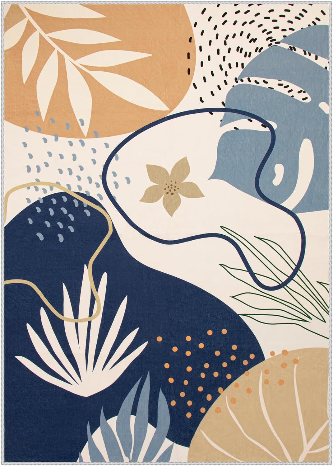 Lahome Washable Area Rug - 8x10 Non-Slip Ultra-Thin Large Area Rug, Soft Bedroom & Living Room Rug, Boho Botanical Print Indoor Stain Resistant Floor Rug for Dining Room Table & Office