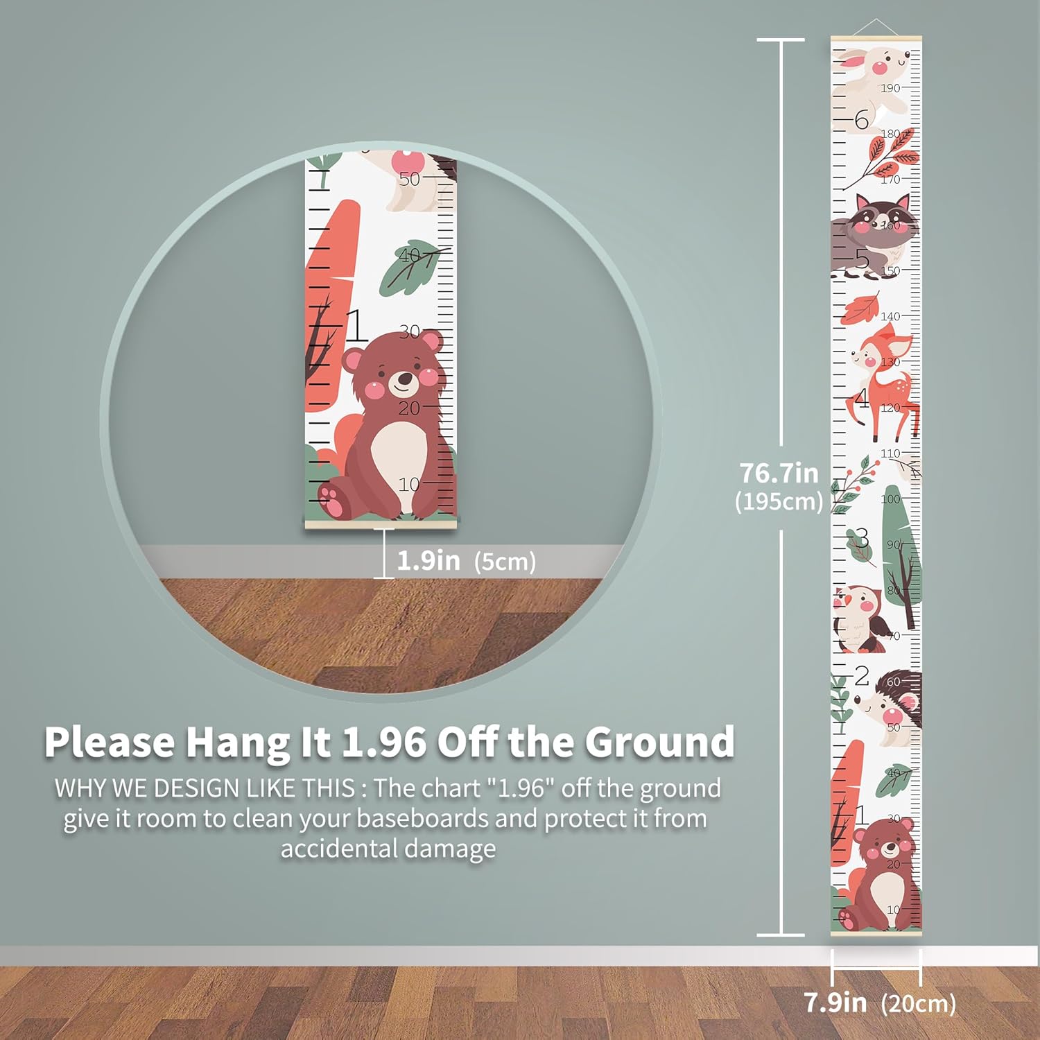 - Over Ground Design: Please hang it 1.96 in/5 cm off the ground, will not interfere in floor cleaning.We are committed to provide a good shopping experience to customers, please let us know if there is any quality problem with the child height wall chart
