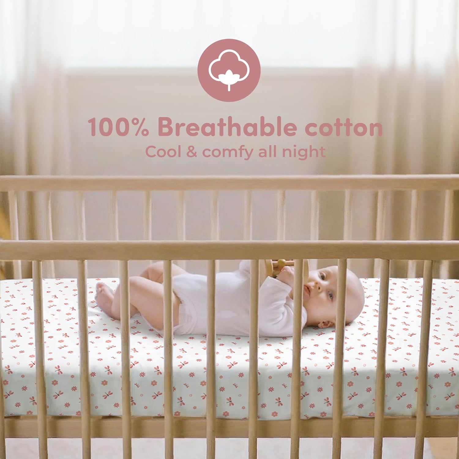 - Perfect Fit for All Crib Sizes: Each set includes two crib sheets that are designed to perfectly fit standard crib mattresses (52” x 28”) as well as mini cribs and toddler beds. The sheets fit mattresses with a height of 3” to 8”, ensuring a snug and secure fit.