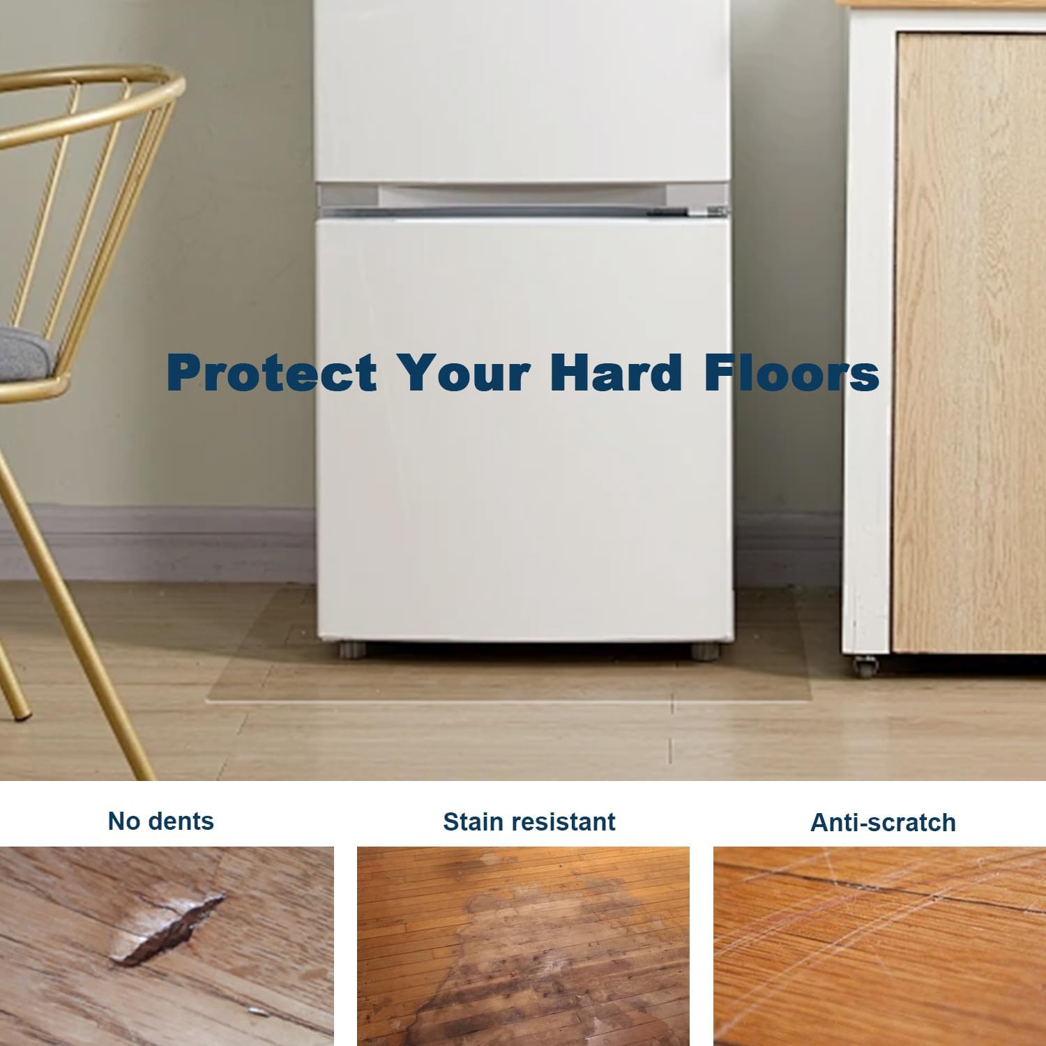 - Protect Your Floors from Scratches and Dents: This PVC floor mat offers a protective barrier against the damaging effects of heavy appliances, protecting your hard floors from scratches, dents, and other marks
